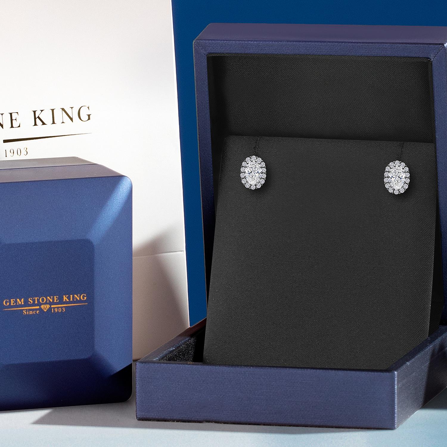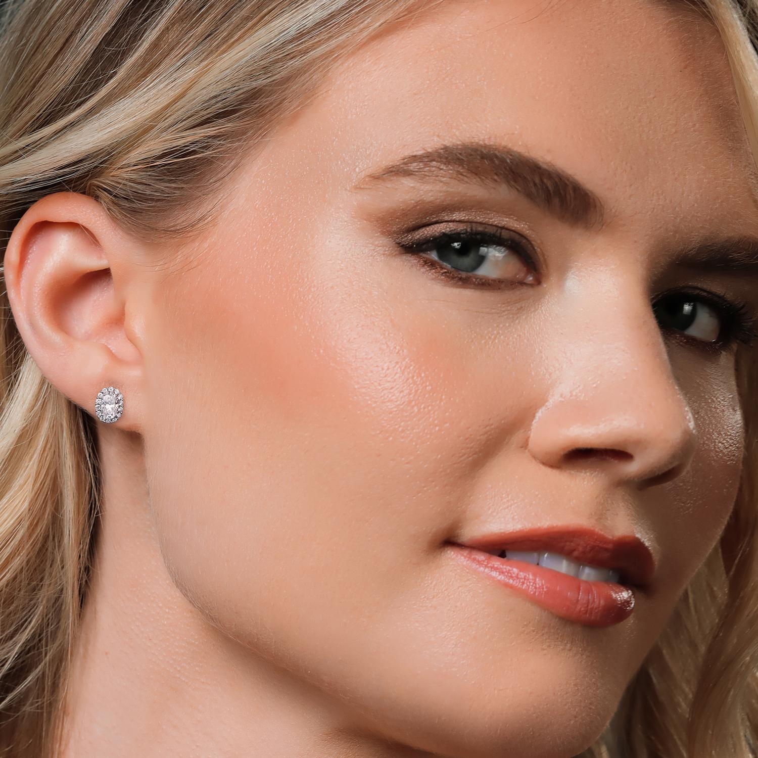 EXQUISITE WHITE LAB GROWN DIAMONDS: Each earring features a central 6X4MM oval white lab-grown diamond, surrounded by a halo of smaller diamonds, totaling 1.02 Cttw. These ethically sourced diamonds provide all the brilliance and clarity of traditional diamonds, making these earrings a sustainable and glamorous choice.