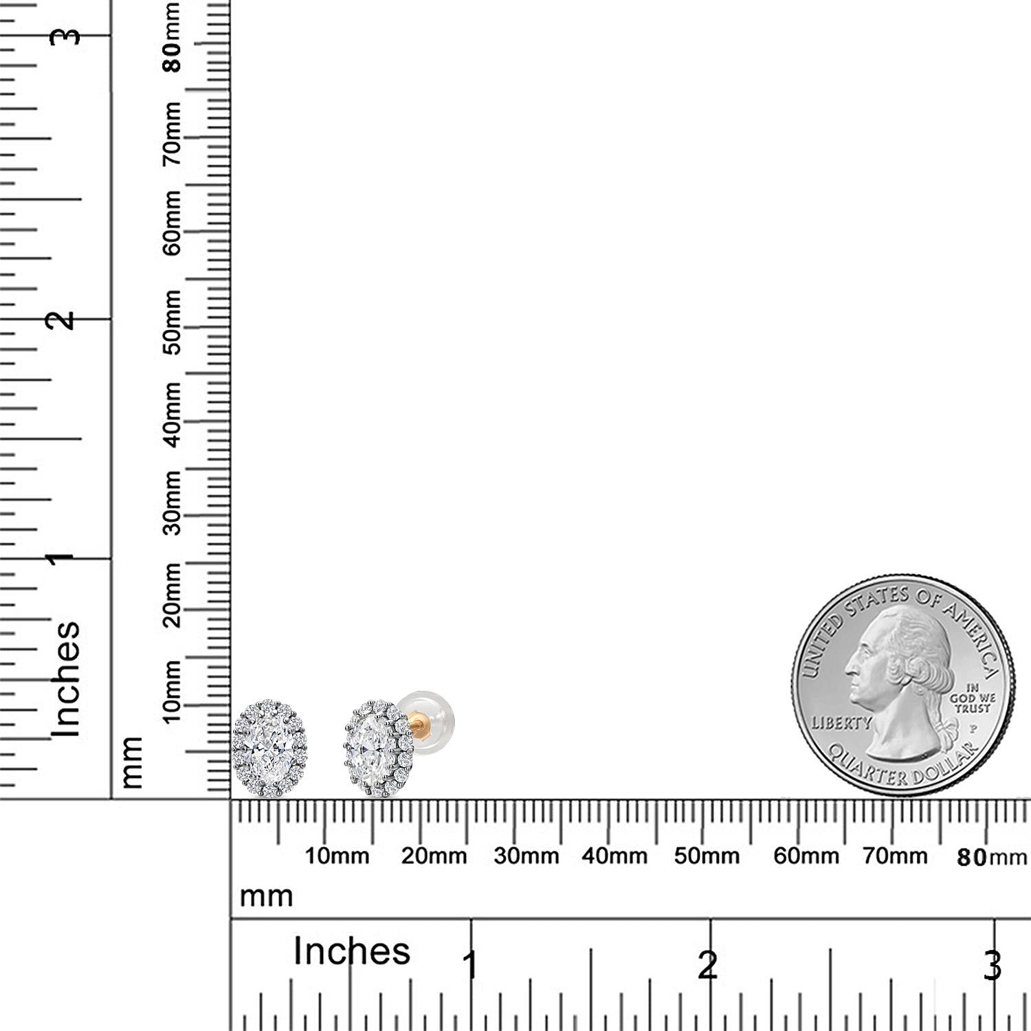 10K Solid Gold Post and Sterling Silver White Lab Grown Diamond Halo Earrings For Women | 1.02 Cttw | Oval 6X4MM