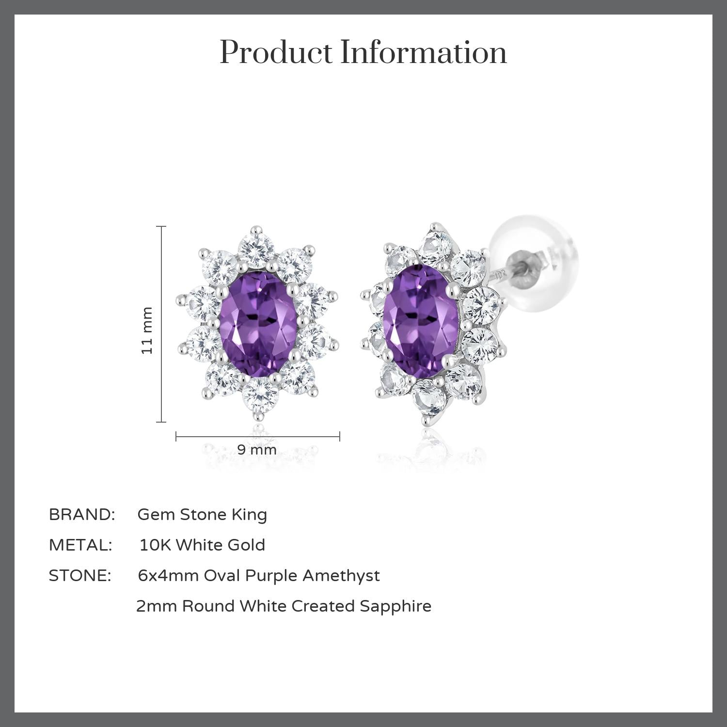 10K White Gold Oval Gemstone Birthstone and White Created Sapphire Halo Stud Earrings | Oval 6X4MM | Gold Earrings for Women