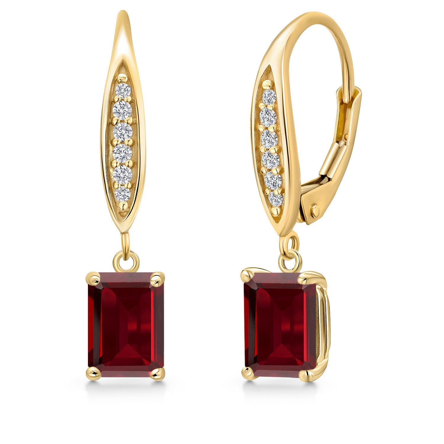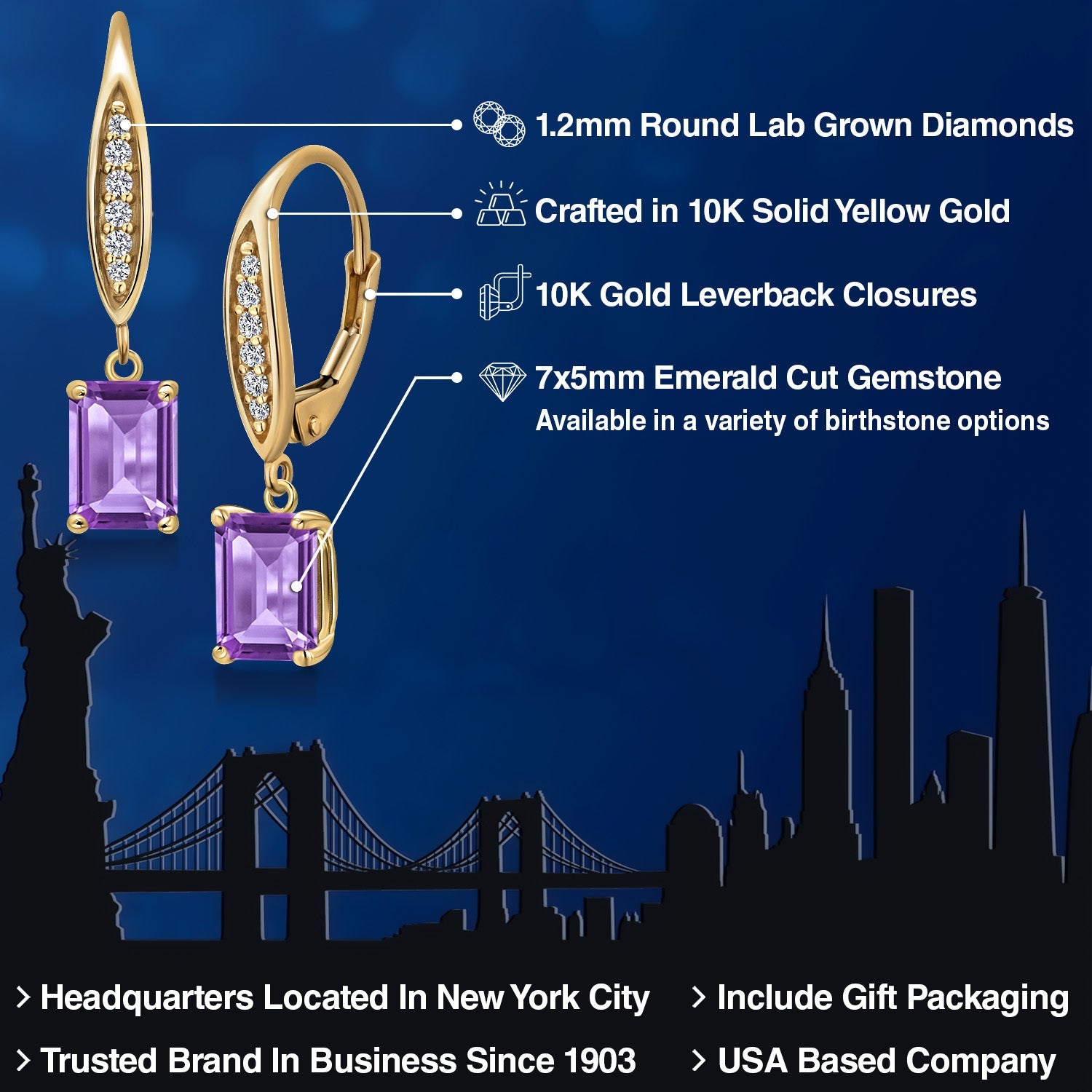 10K Yellow Gold 7X5MM Emerald Cut Gemstone Birthstone and Lab Grown Diamond Dangle Earrings For Women | Fine Jewelry Gifts for Her Mom Women Wife