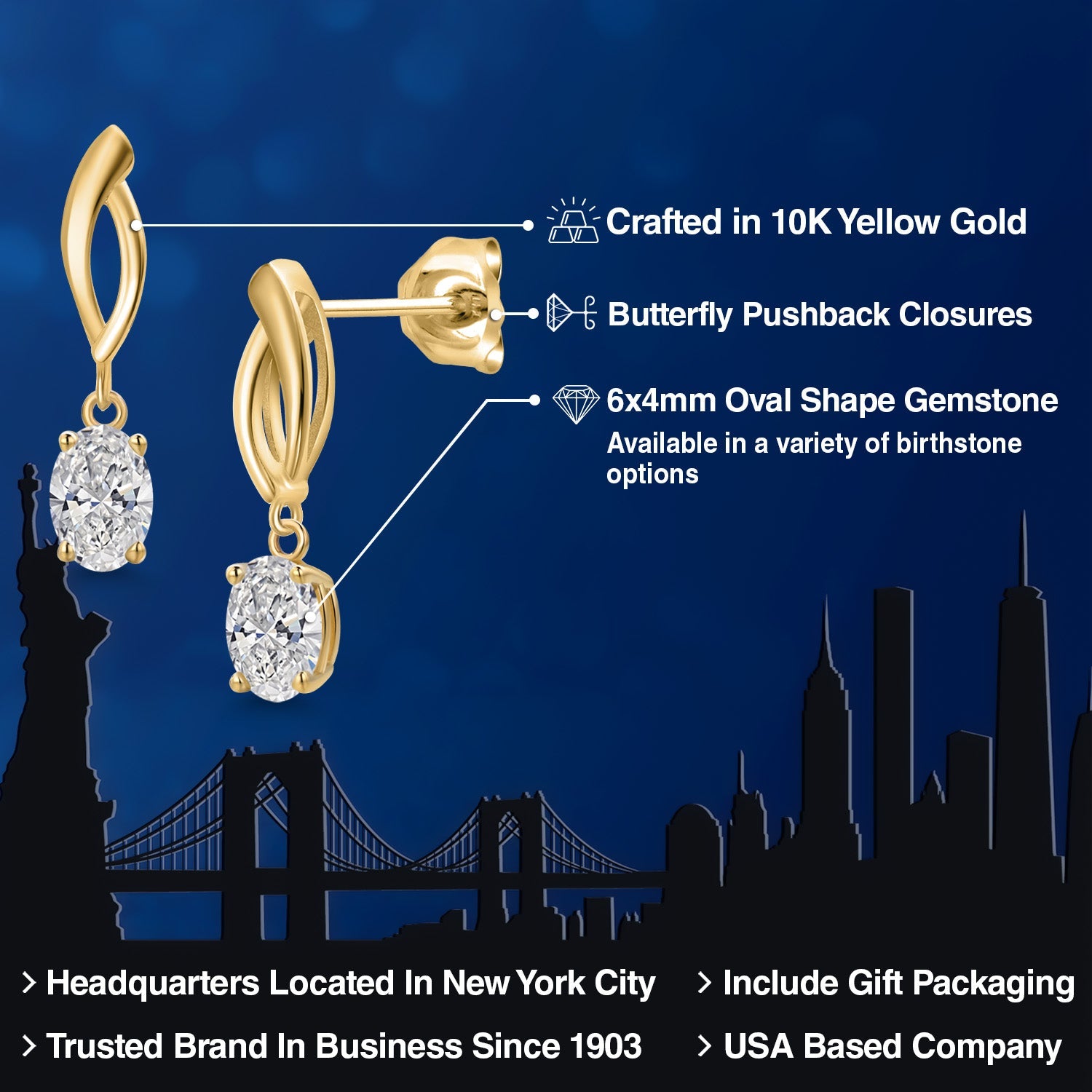 10K Yellow Gold 6X4MM Oval Cut Gemstone Birthstone Infinity Dangle Earrings For Women | Gold Earrings For Women