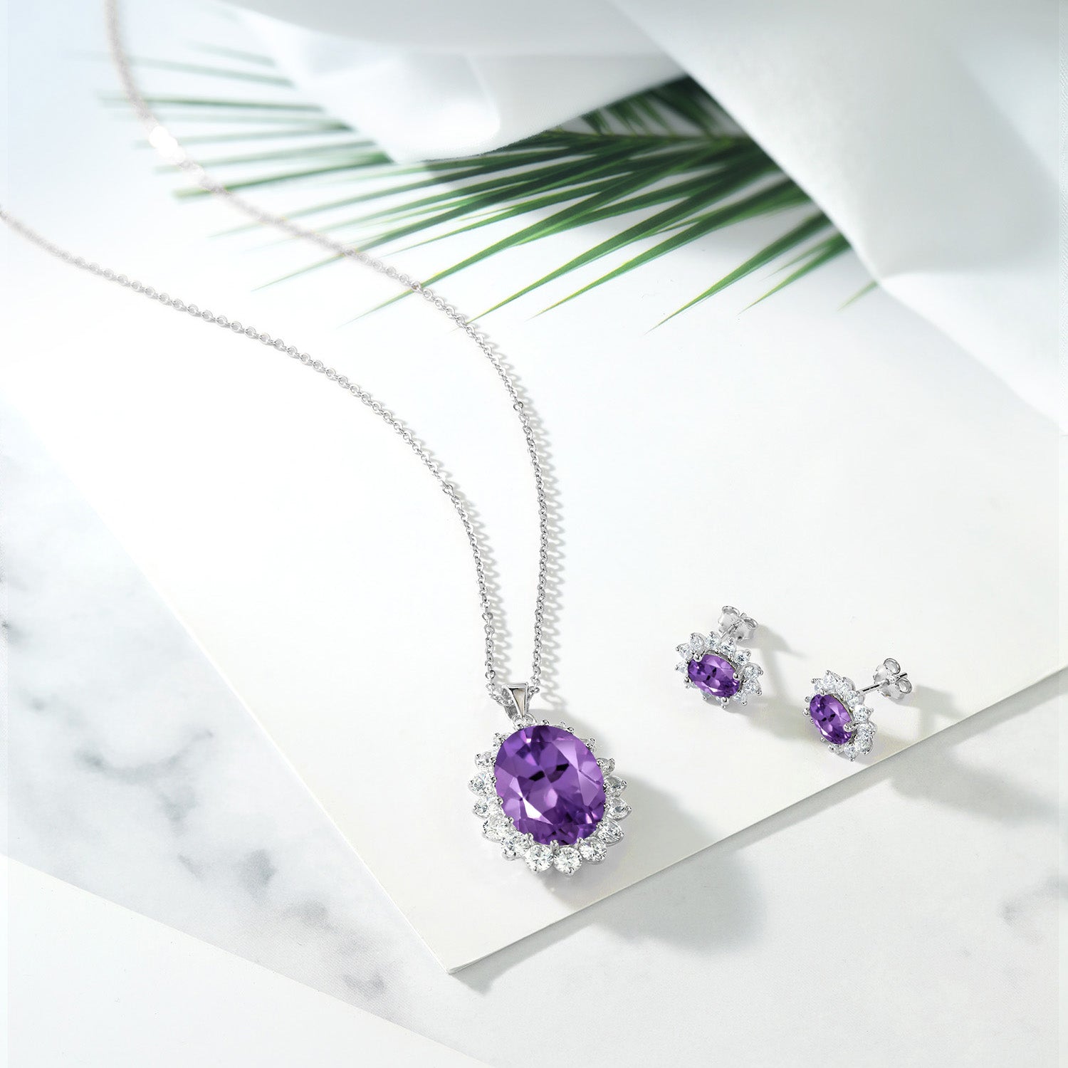 MEASUREMENTS: 18x13mm Oval Heat-Treated Purple Amethyst, 7x5mm Oval Heat-Treated Purple Amethyst2, x, 2, mm Round White Zirconia. Total Carat Weight is 14.7 cttw