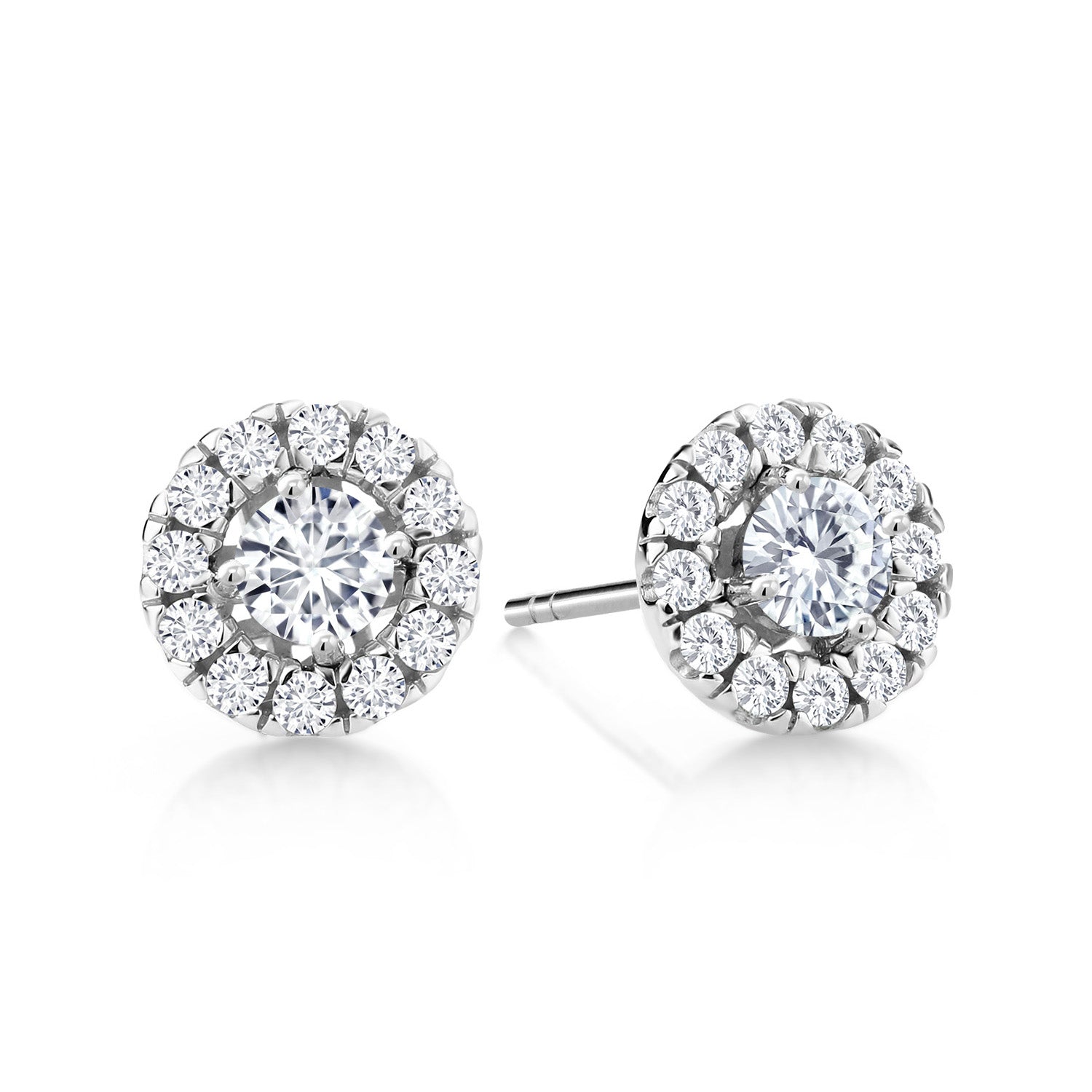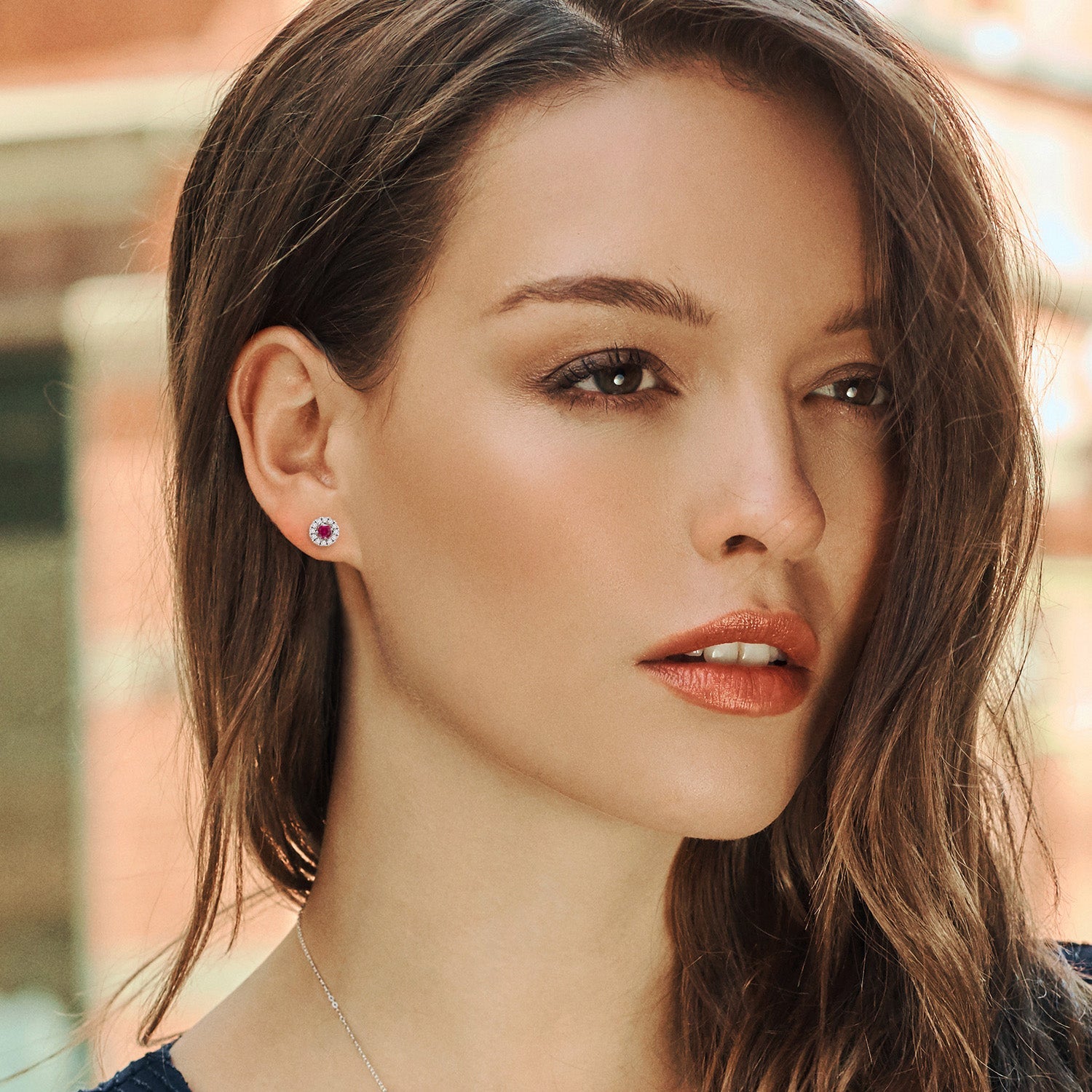 14K White Gold 3.5MM Round Gemstone Birthstone and White Lab Grown Diamond Halo Earrings | Center Stone: 3.5MM | Gold Earrings for Women