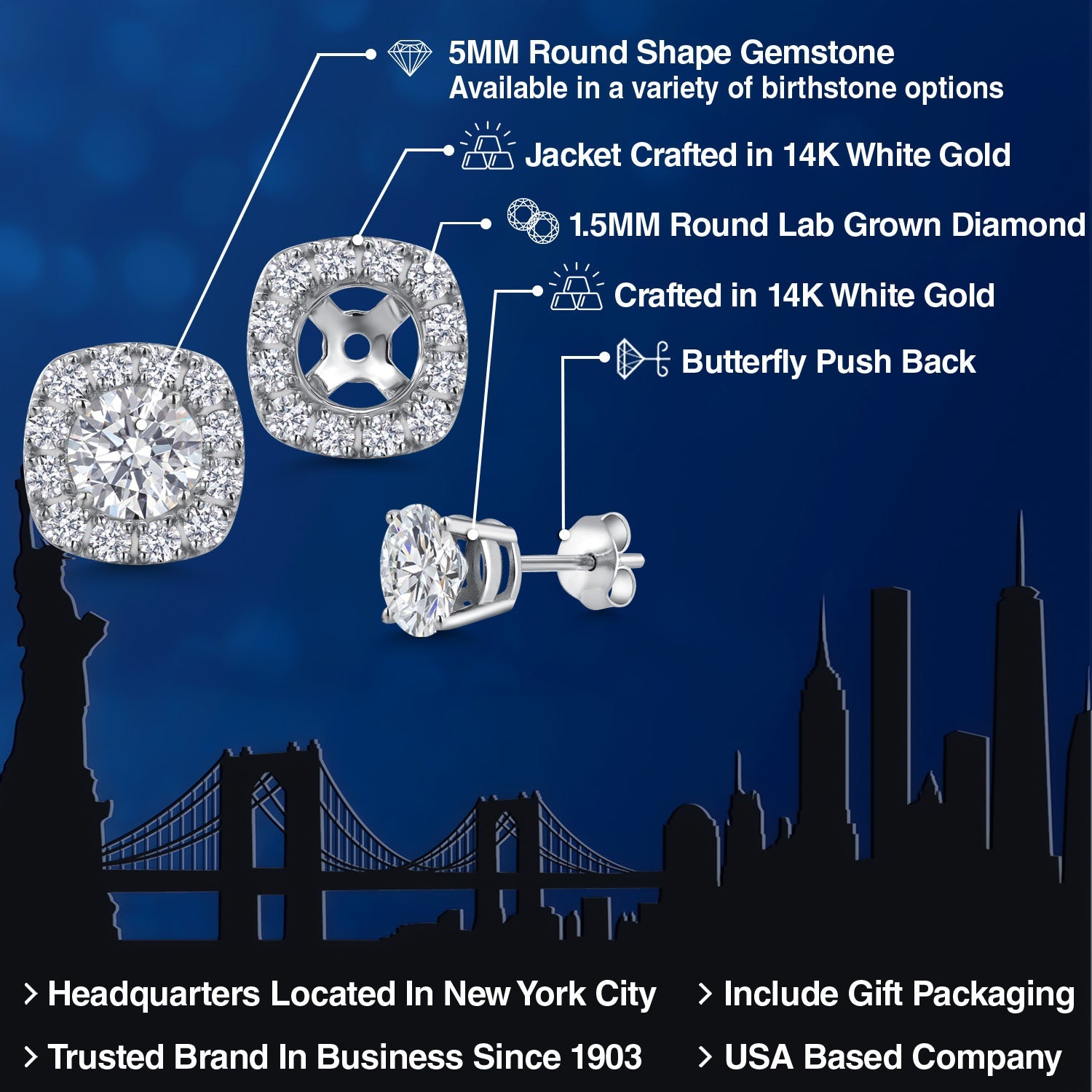 VERSATILE STYLE WITH DIAMOND-ENCRUSTED JACKETS: Transform your look effortlessly with removable jackets featuring 1.5MM lab-grown diamonds that form a shimmering halo around the gemstone. Whether worn as minimalist studs or glamorous drops, these earrings are designed for versatility and undeniable sophistication.