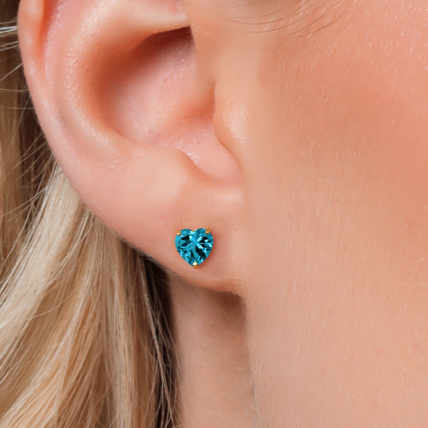 14K Yellow Gold 6MM Heart Shape Gemstone Birthstone Stud Earrings | Gold Earring For Women Men
