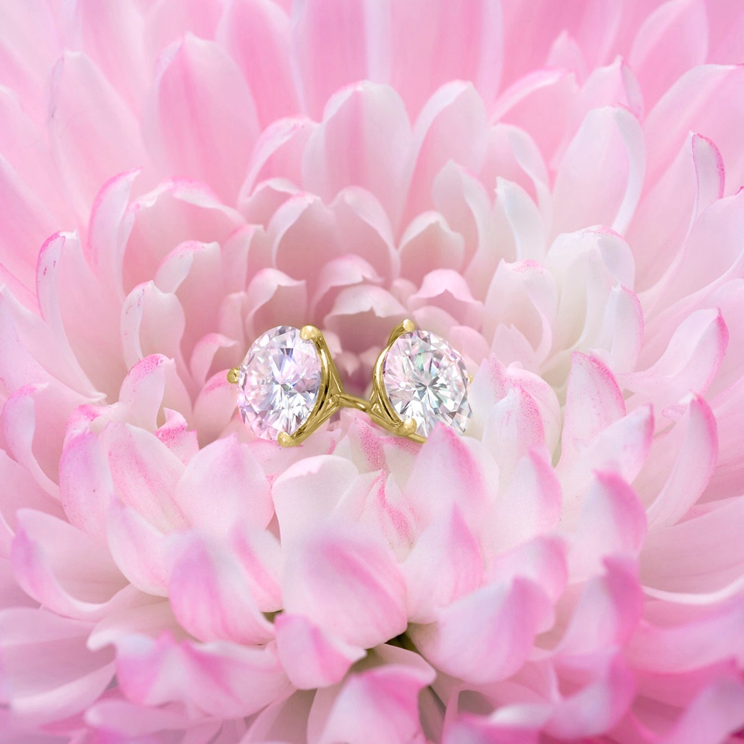 14K Yellow Gold White Moissanite Friction Back Martini Stud Earrings | 1.60 Cttw | Round 6MM | Gold Earrings For Women Men