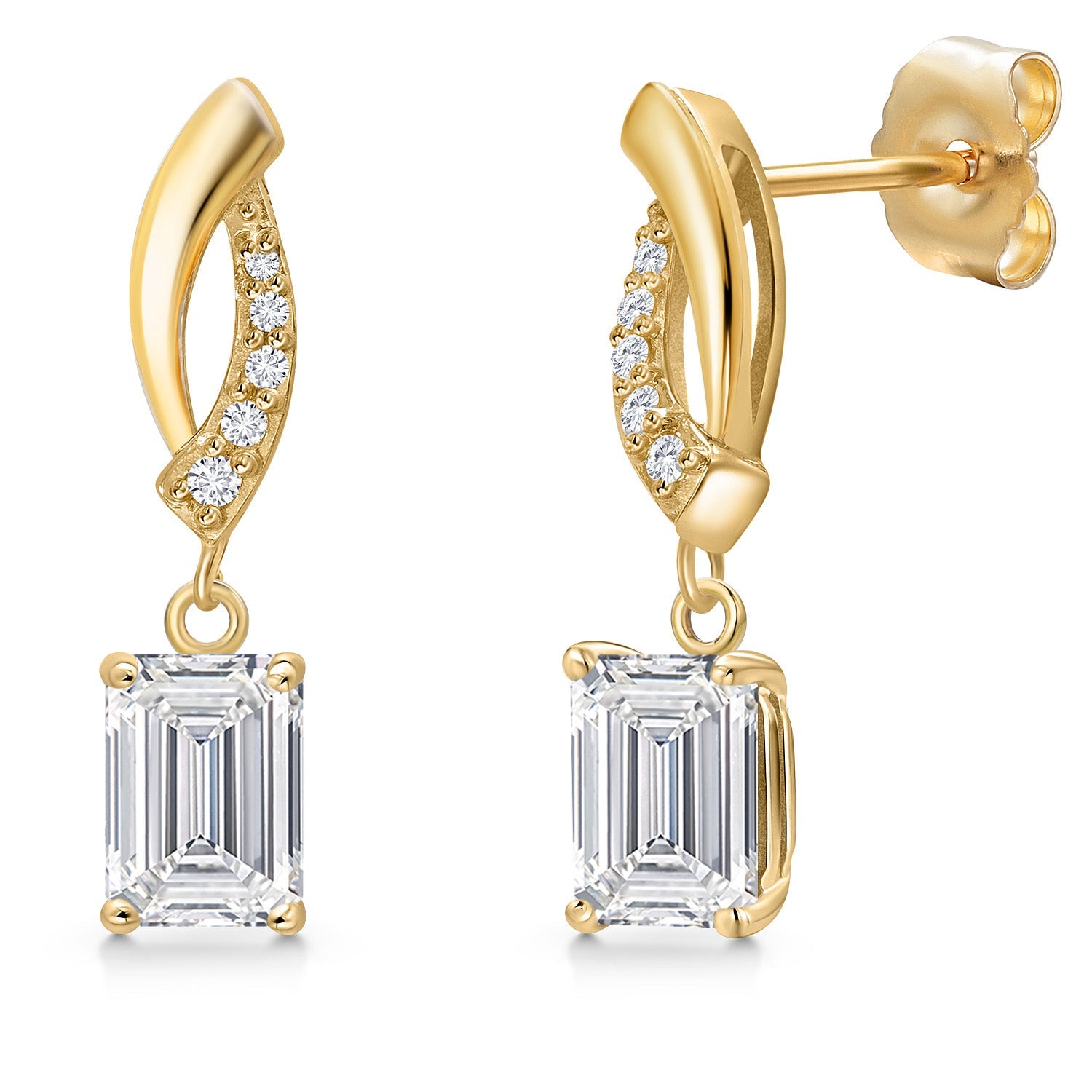 14K Yellow Gold Gemstone Birthstone and Lab Grown Diamond Dangle Earrings for Women | Emerald Cut 6X4MM and Round 1MM | Fine Jewelry Gifts for Her Mom Women Wife