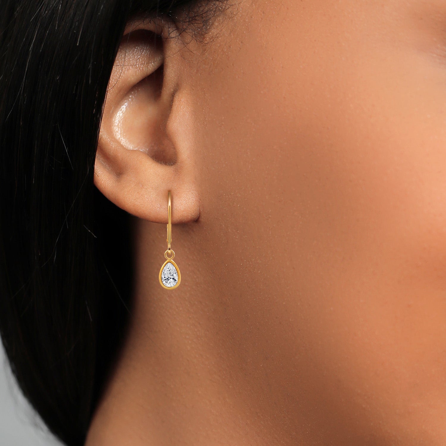ELEGANT DESIGN FOR TIMELESS BEAUTY: Featuring pear-shaped 7x5MM lab-grown diamonds, these dangle earrings radiate sophistication and are set in luxurious 14K yellow gold, perfect for elevating any look.
