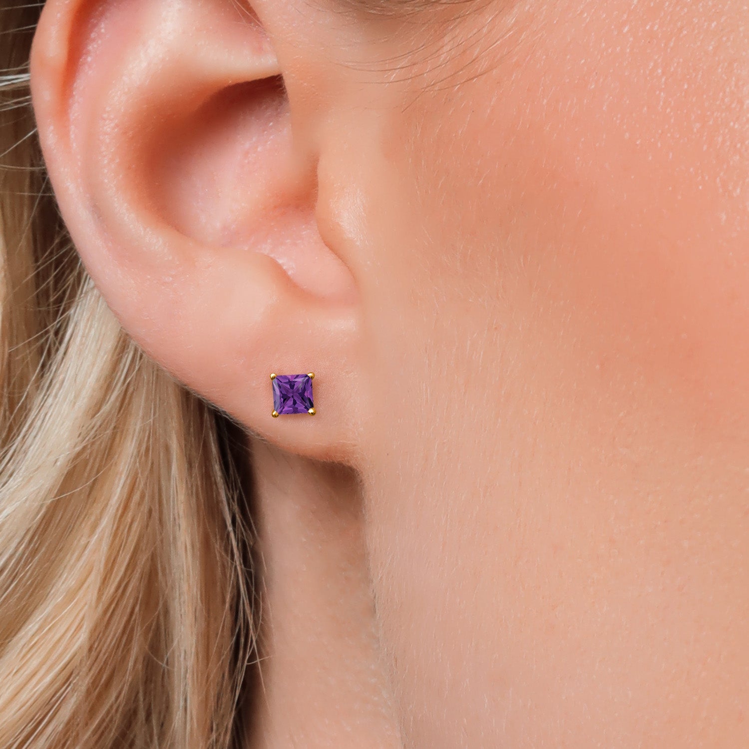 14K Yellow Gold Princess 5MM Gemstone Birthstone Stud Earrings | Double Notch | Gold Earrings For Women Men