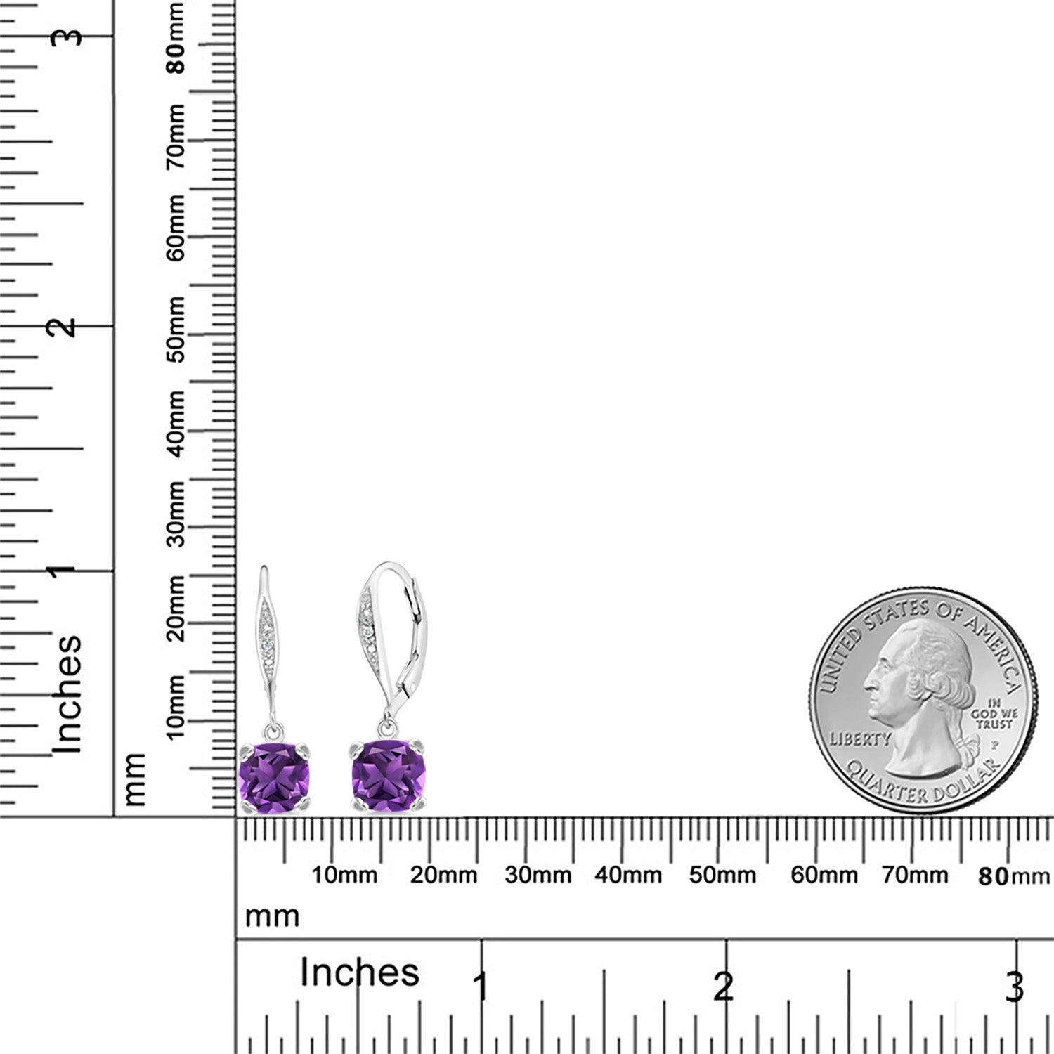 Drop Dangle Earrings For Women | 7MM Cushion Cut Gemstone Birthstone and White Diamond | 925 Sterling Silver | Fine Jewelry Gifts for Her Mom Women Wife
