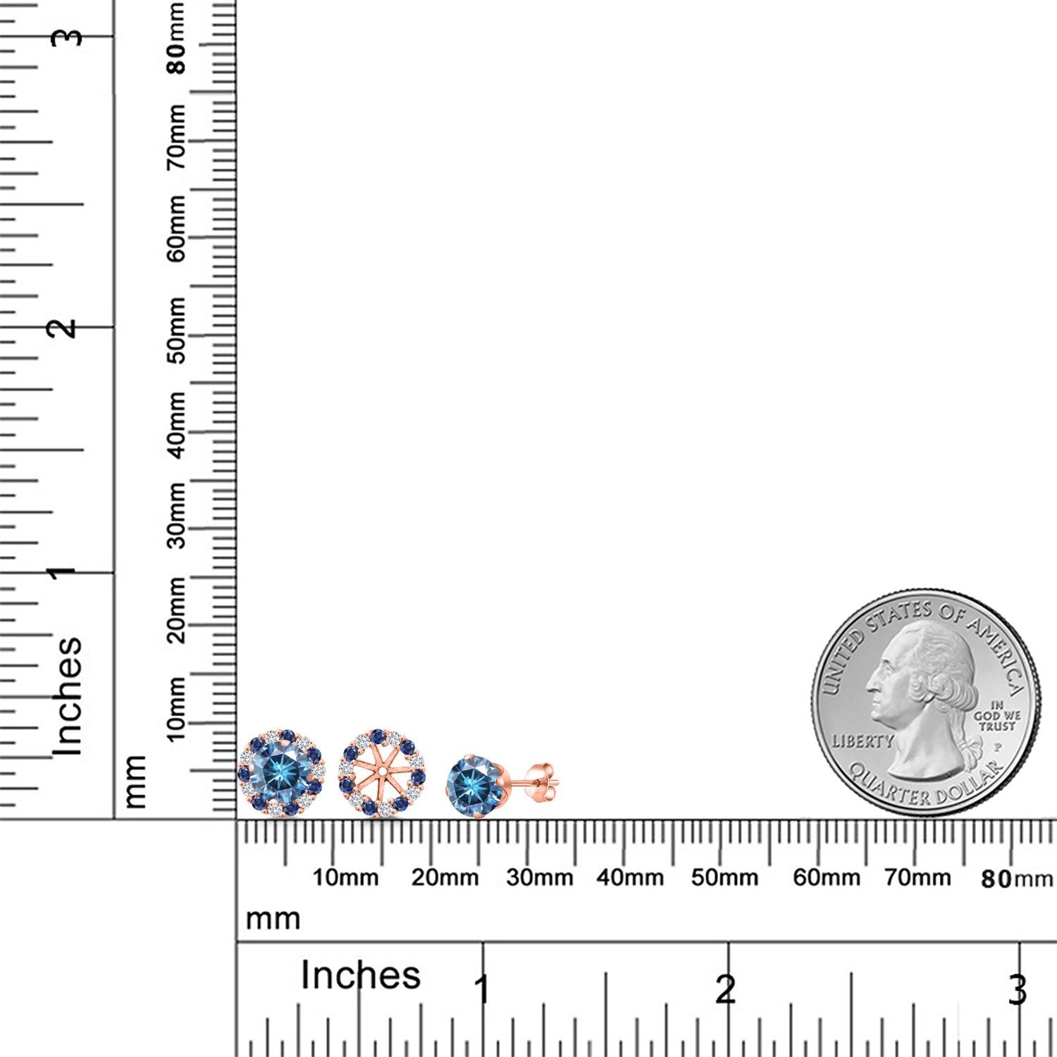 18K Rose Gold Plated Silver 6MM Round Gemstone Birthstone Halo Stud Earrings for Women with Removable Jackets