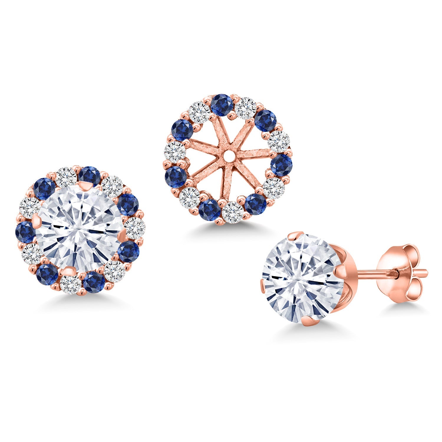 18K Rose Gold Plated Silver Forever Classic Moissanite Earrings with Jackets For Women | 1.60 Cttw | Gemstone Birthstone | Round 6MM