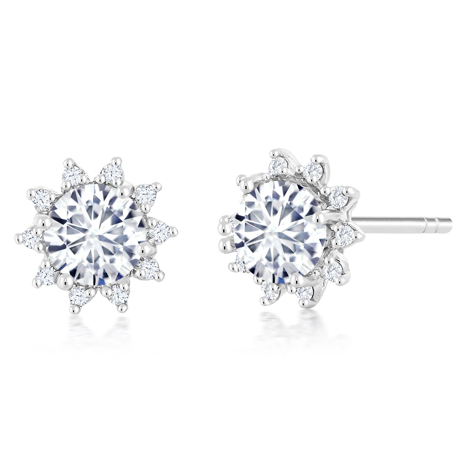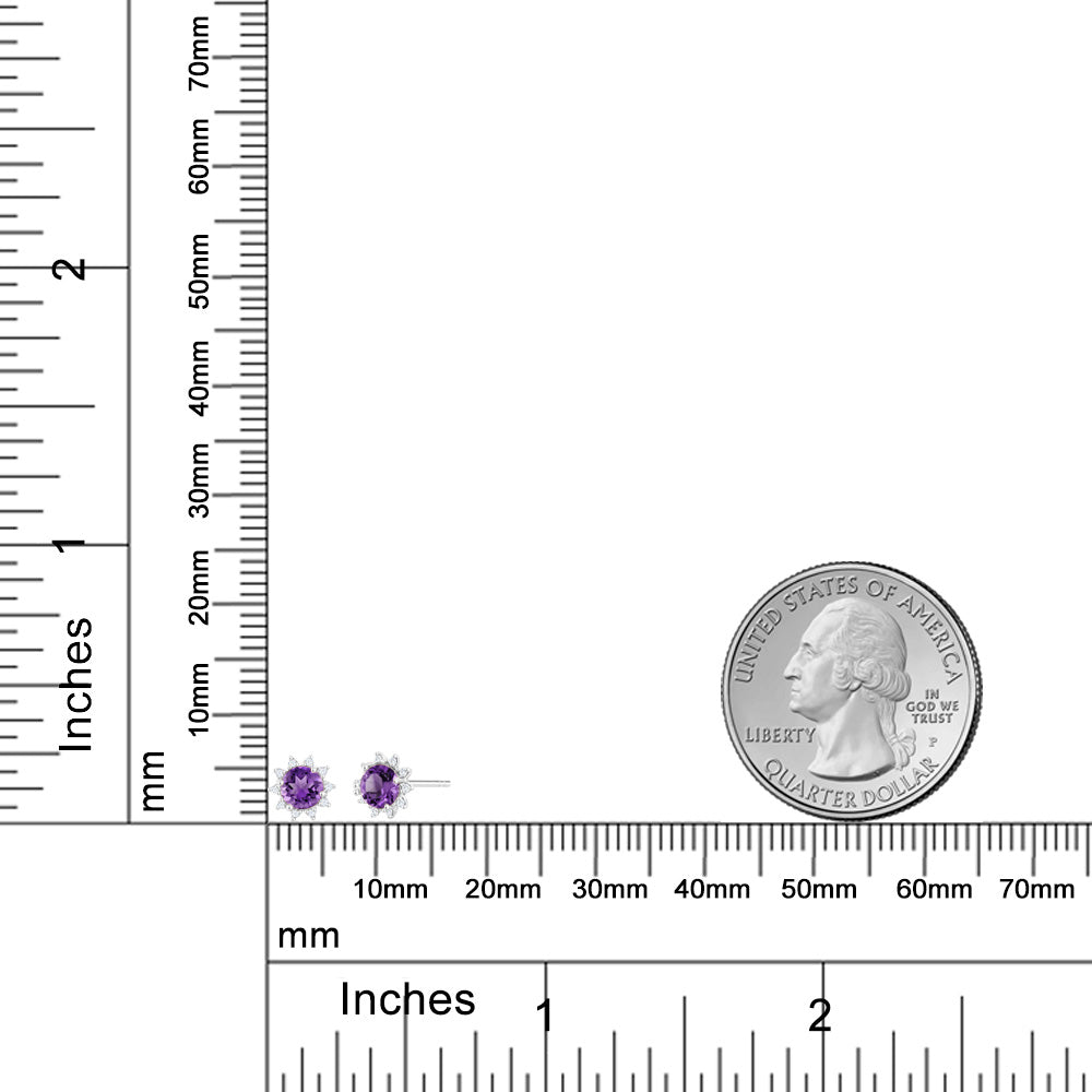 18K White Gold Gemstone Birthstone and White Diamond Earrings | Halo Stud Earrings for Women | White Gold Earrings for Women