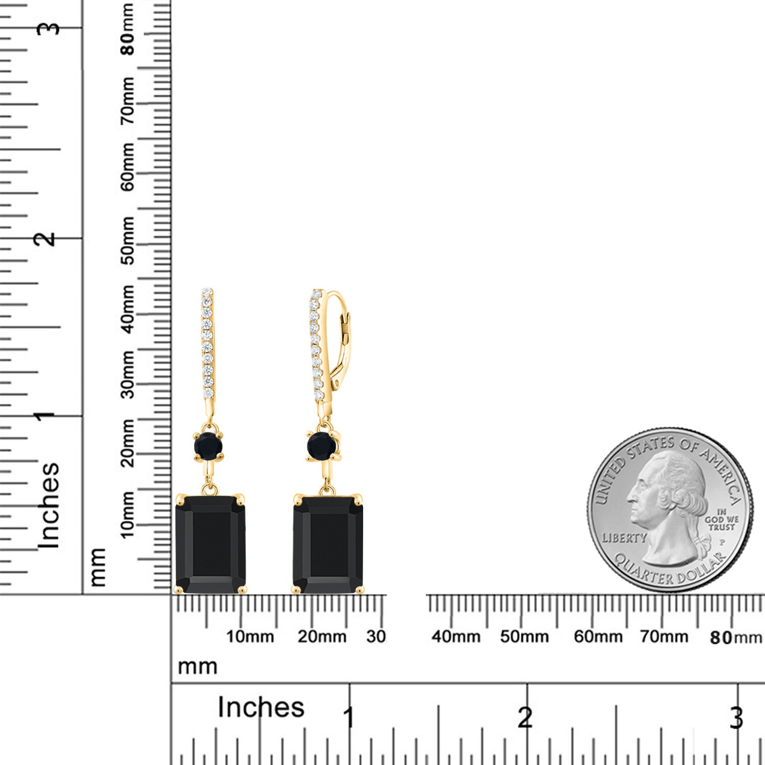 18K Yellow Gold Plated Silver Black Onyx Earrings For Women (13.94 Cttw, Gemstone Birthstone, Emerald Cut 14X10MM)