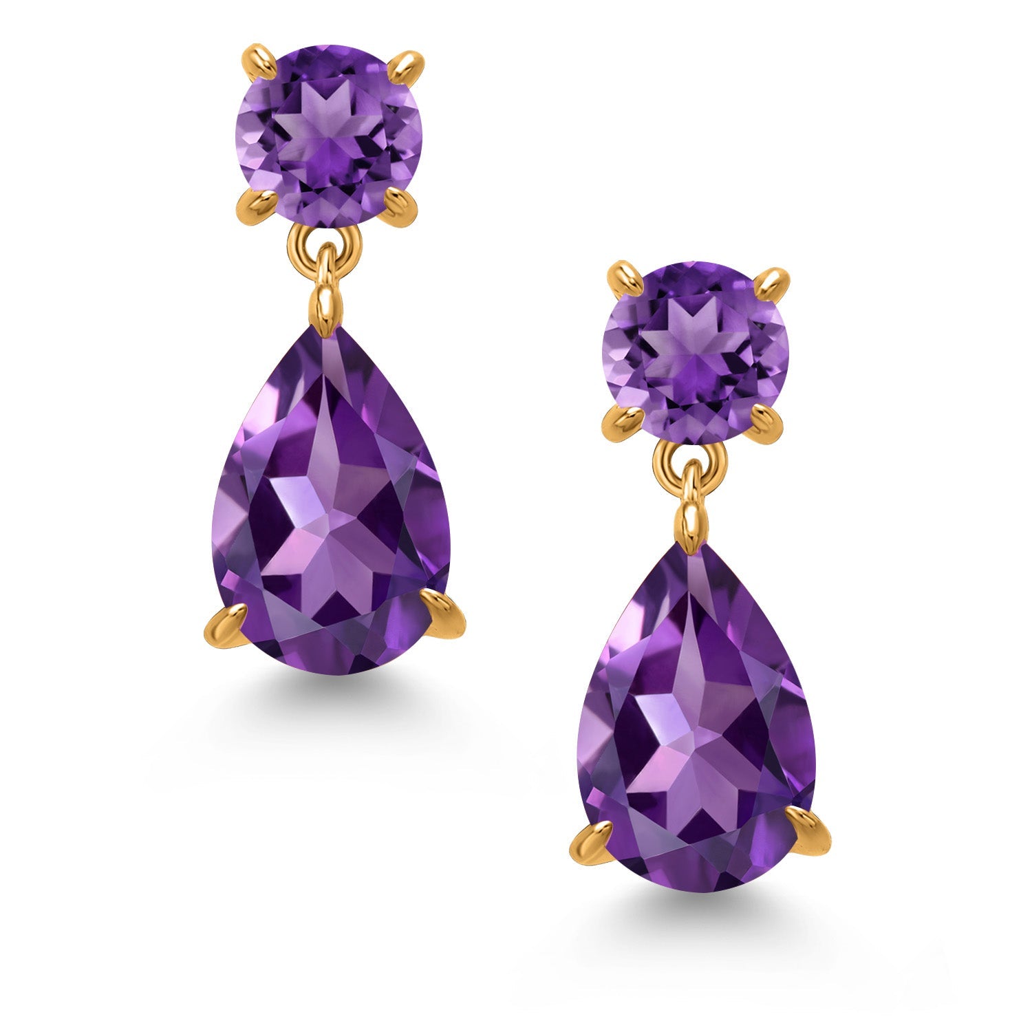 18K Yellow Gold Plated Silver Purple Amethyst Teardrop Dangle Drop Earrings For Women (7.30 Cttw, Gemstone Birthstone, Pear Shape 12x8MM, Round 6MM)