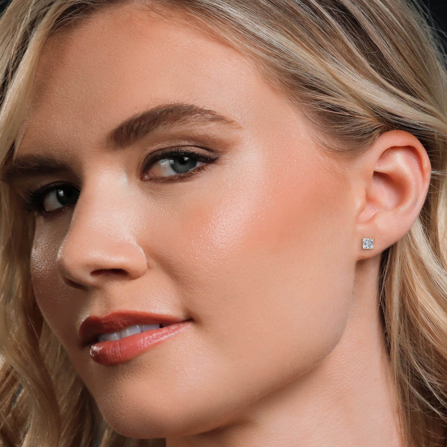 DAZZLING 2.00 CARAT PRINCESS CUT DIAMONDS: These stunning stud earrings feature a total of 2.00 Ct of princess-cut lab-grown diamonds, known for their sharp, clean lines and exceptional sparkle, creating a bold and elegant look.