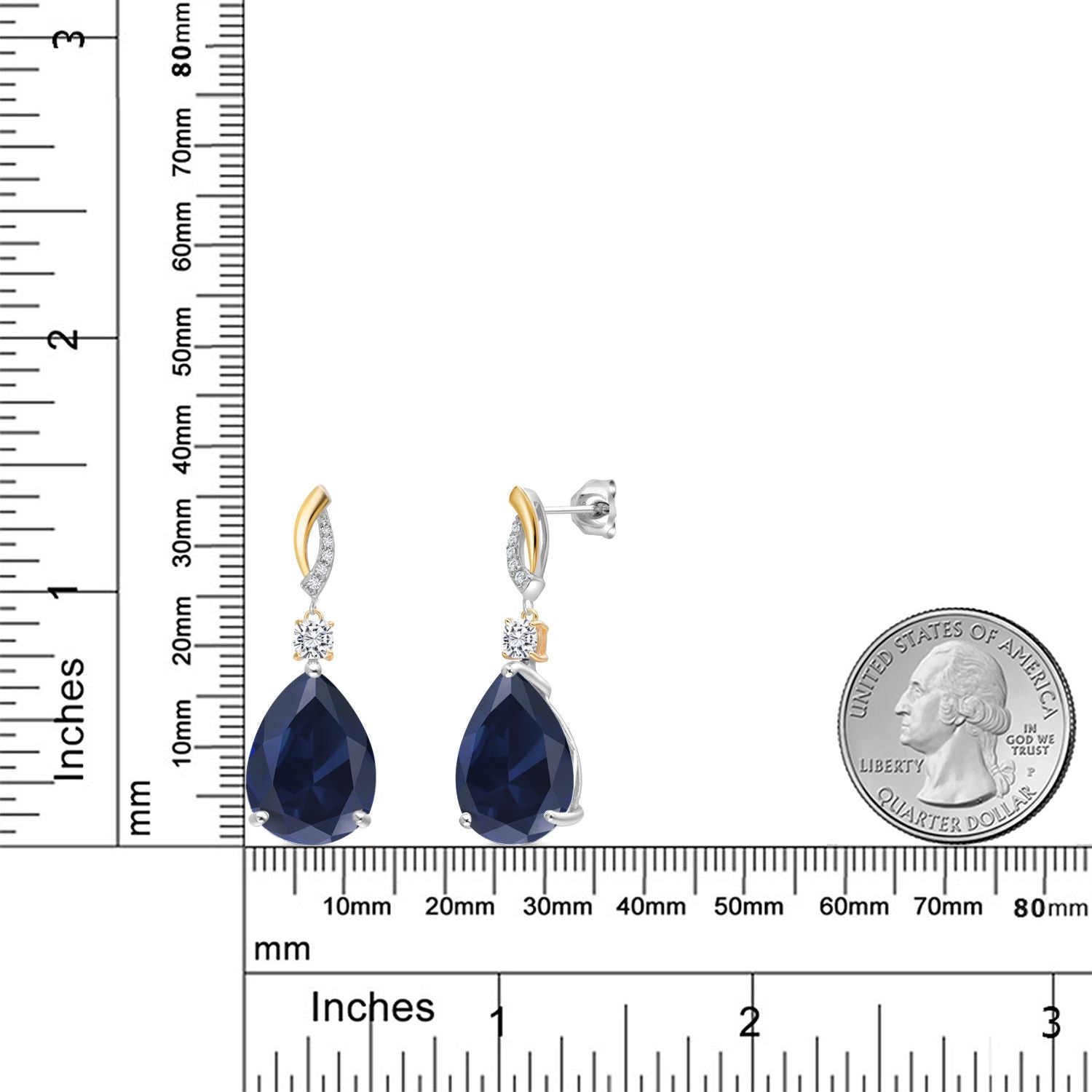25.95 Cttw 925 Silver and 10K Yellow Gold Blue Created Sapphire White Moissanite and White Lab Grown Diamond Earrings For Women | Gemstone Birthstone | Pear Shape 18X13MM