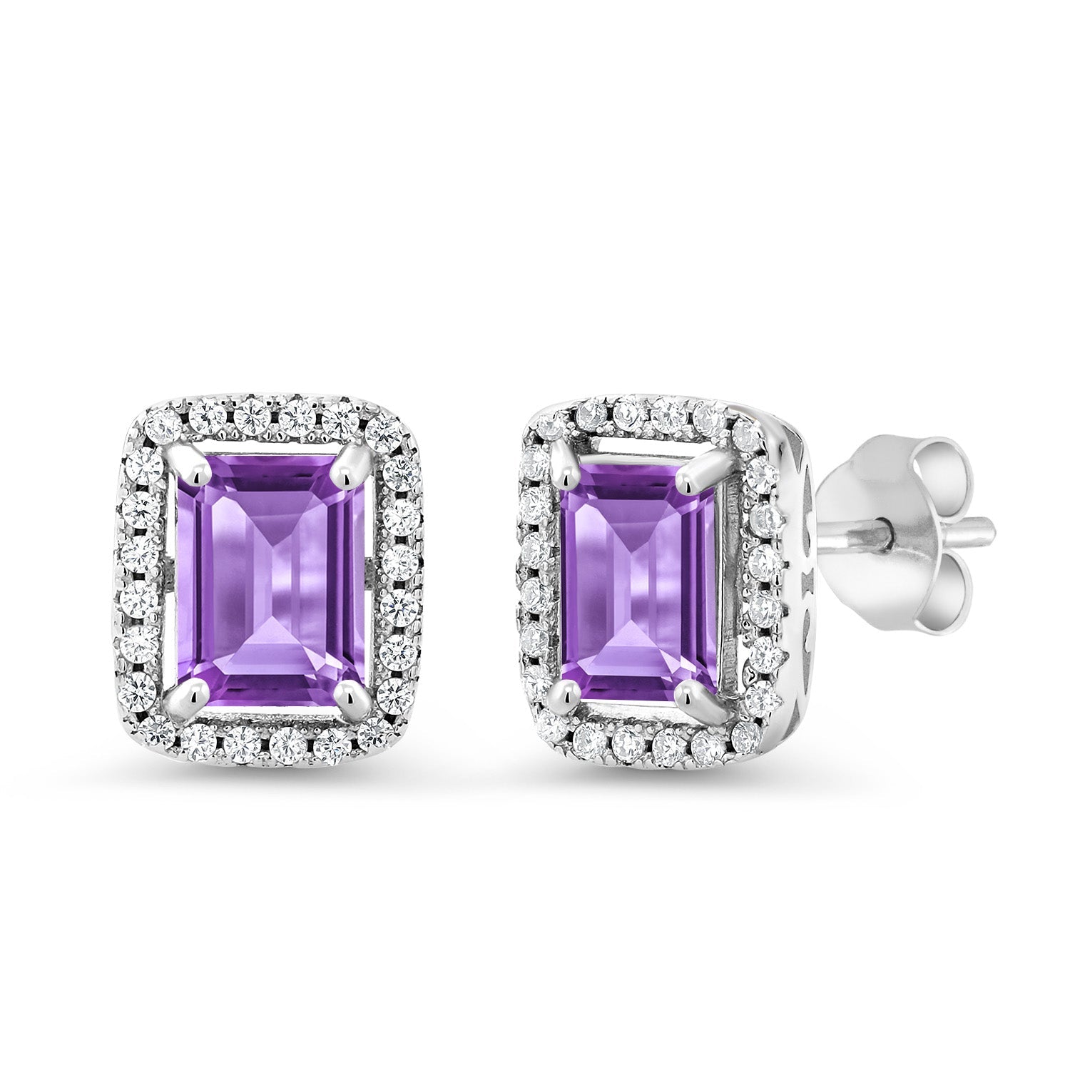 Halo Earring for Women | 925 Sterling Silver | Gemstone Birthstone Earrings | Emerald Cut 8X6MM | Fine Jewelry Gifts for Her Mom Women Wife