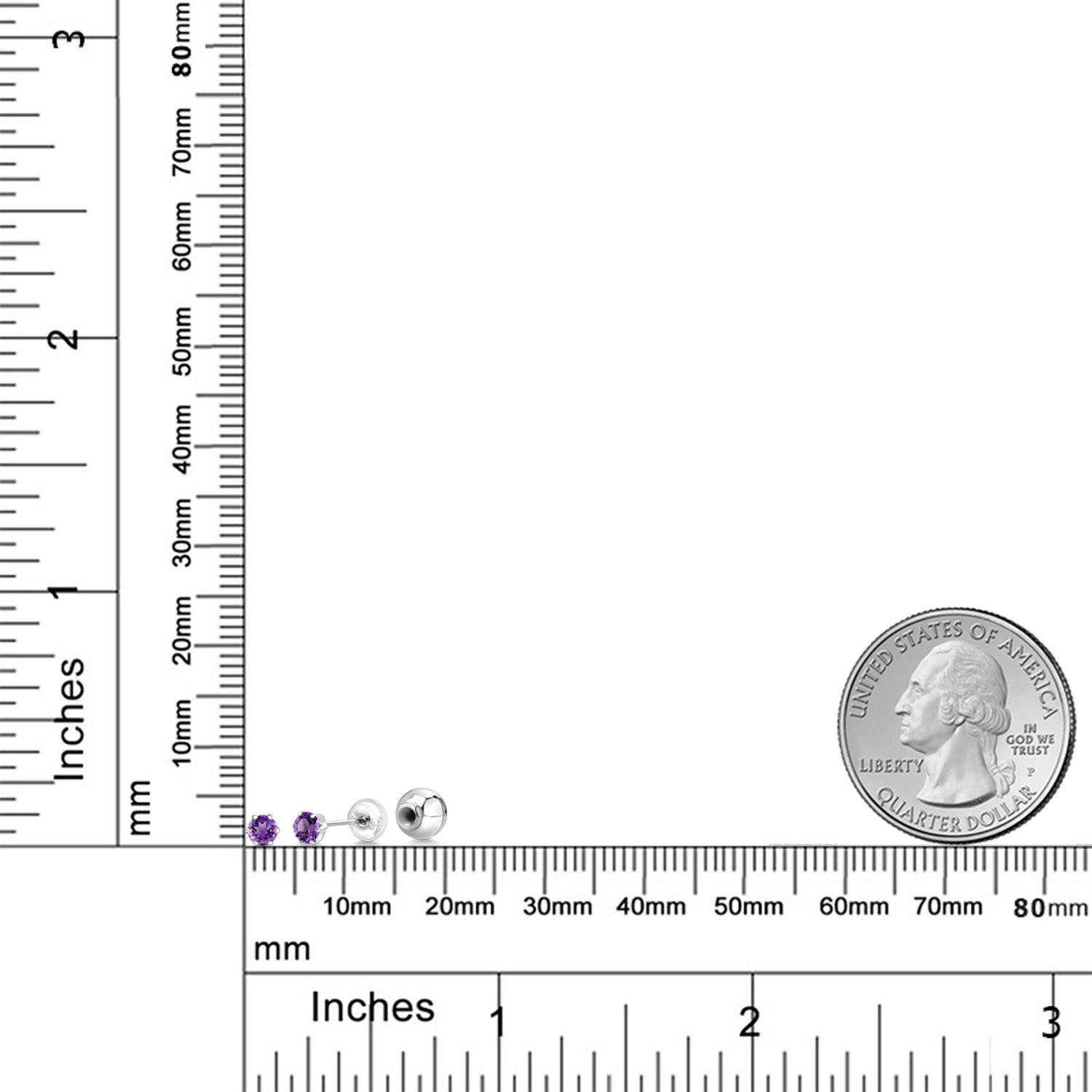3MM Round Gemstone Birthstone Six Prong Platinum Stud Earrings For Women Men