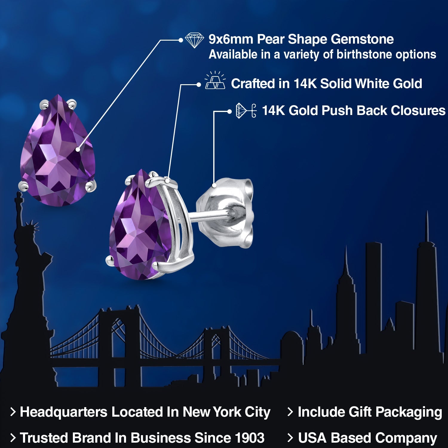 14K White Gold 9X6MM Pear Shape Gemstone Birthstone Double Notch Teardrop Stud Earrings For Women and Men