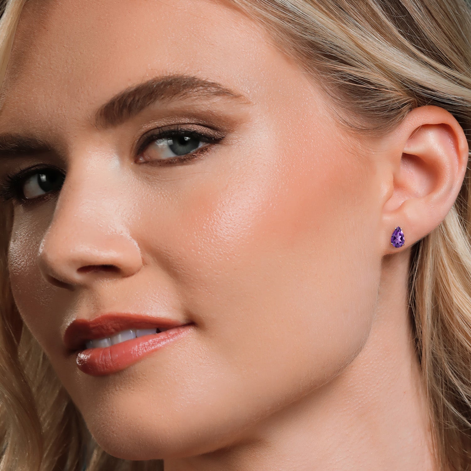 PEAR-SHAPED ELEGANCE: Showcasing a 9x6mm pear-shaped gemstone, these earrings bring a sophisticated touch to any outfit. The elongated silhouette enhances the brilliance of the gemstone, adding a sleek and refined accent to your look. Available in a range of birthstones, these earrings offer a personalized style, making them perfect for both everyday wear and special occasions.