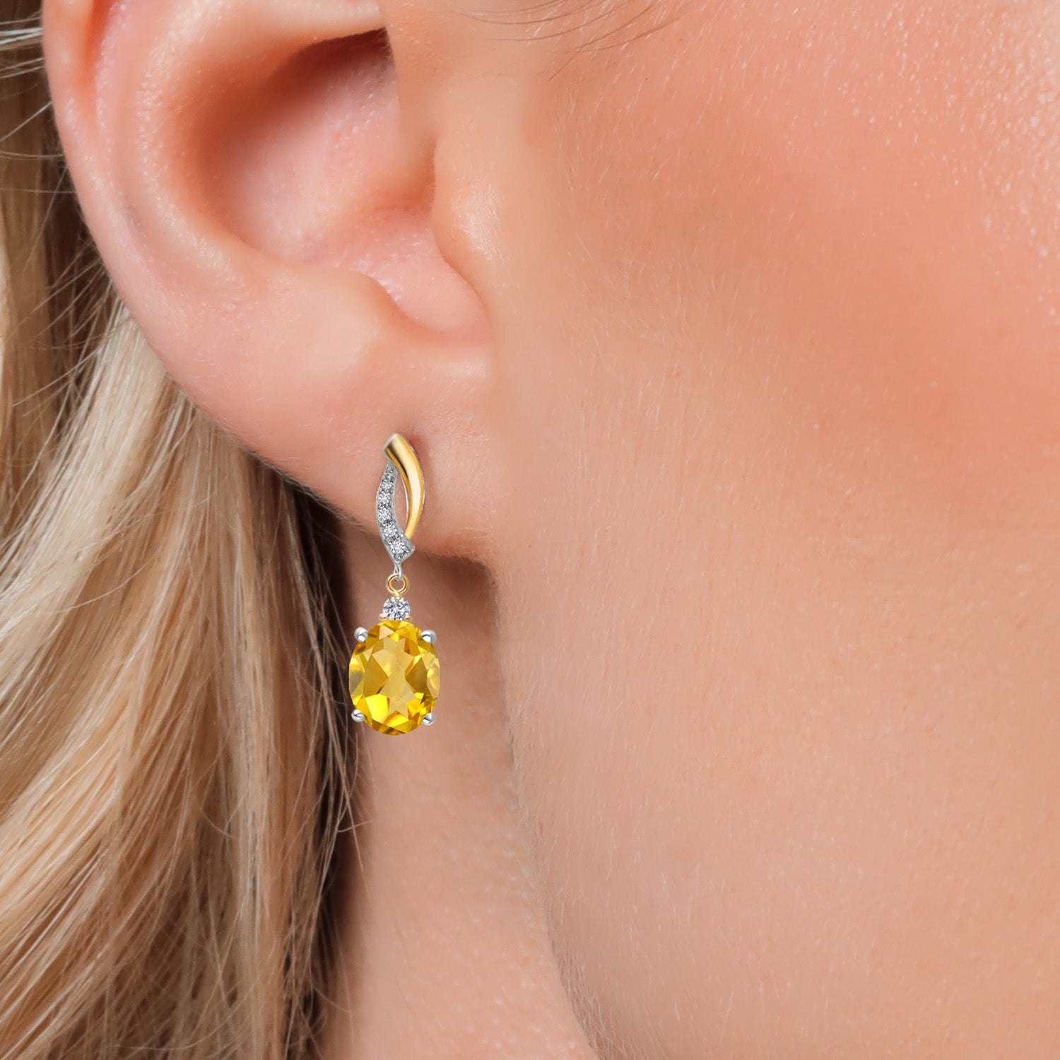 Oval 10X8MM Gemstone & Lab Grown Diamond 925 Silver and 10K Yellow Gold Dangle Earrings For Women | Fine Jewelry Gifts for Her Mom Women Wife