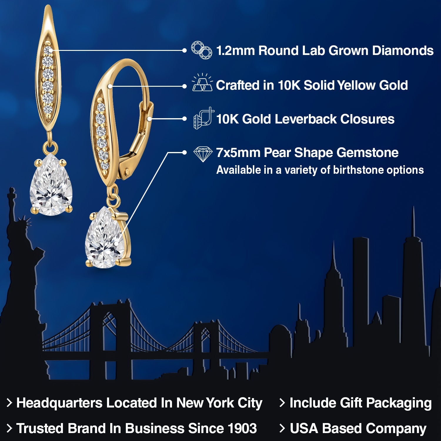 7X5MM Pear Shape Gemstone Birhtstone and Lab Grown Diamond Leverback Dangle Earrings for Women in 10K Yellow Gold | Fine Jewelry Gifts for Her Mom Women Wife