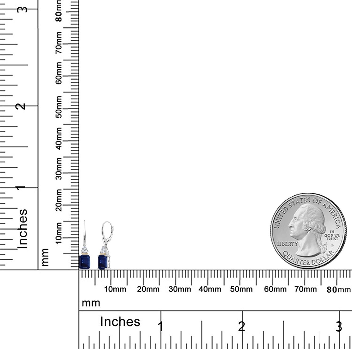 ELEGANT CRAFTSMANSHIP AND STRIKING DESIGN: These stunning dangle earrings feature 5.34 Cttw of bold blue sapphires in emerald-cut 9X7MM settings, accented by brilliant 4MM trillion-cut lab grown diamonds. The combination of 925 Silver and 10K Yellow Gold adds luxurious contrast and sophistication, making these earrings a standout piece.