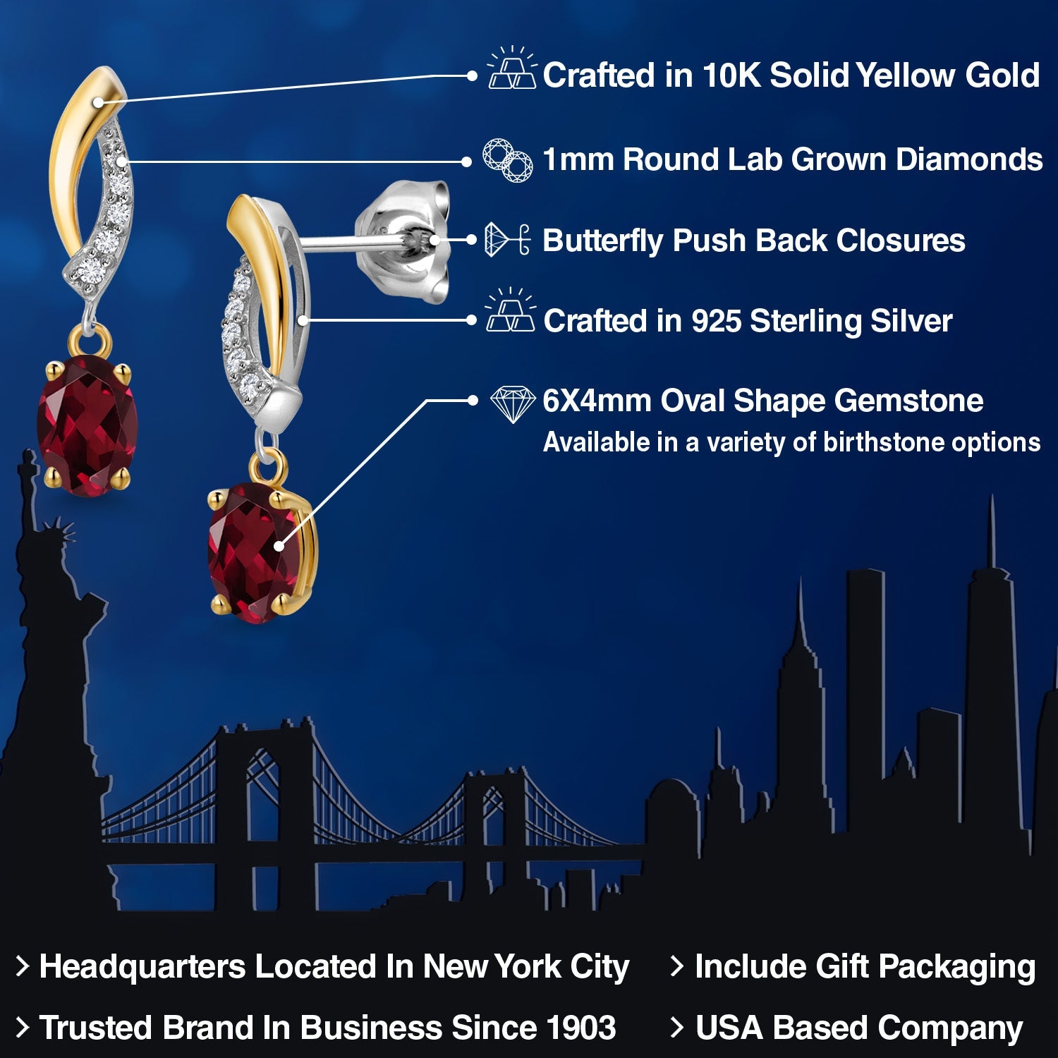 925 Silver and 10K Yellow Gold 6X4MM Oval Gemstone Birthstone and White Lab Grown Diamond Drop Dangle Earrings for Women