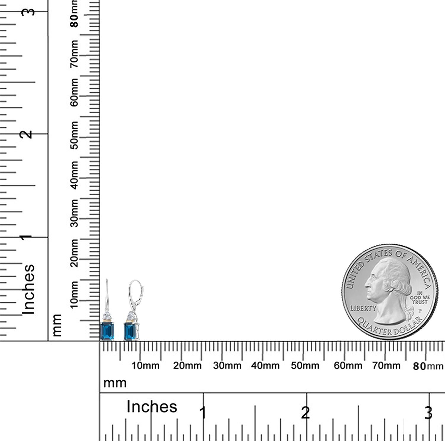 925 Silver and 10K Yellow Gold London Blue Topaz and Lab Grown Diamond Dangle Earrings for Women | 5.86 Cttw | Gemstone November Birthstone | Emerald Cut 9X7MM