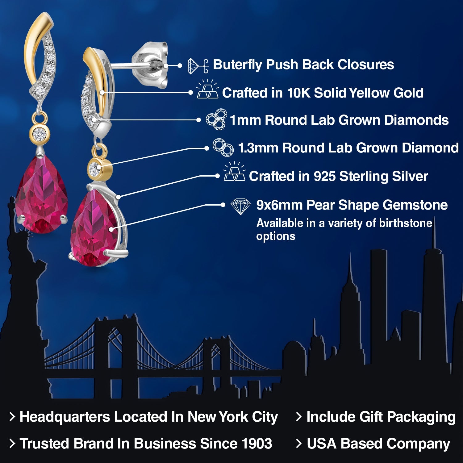 CRAFTED: in 10K Yellow Gold and 925 Sterling Silver EARRING BACKS: post with friction back.