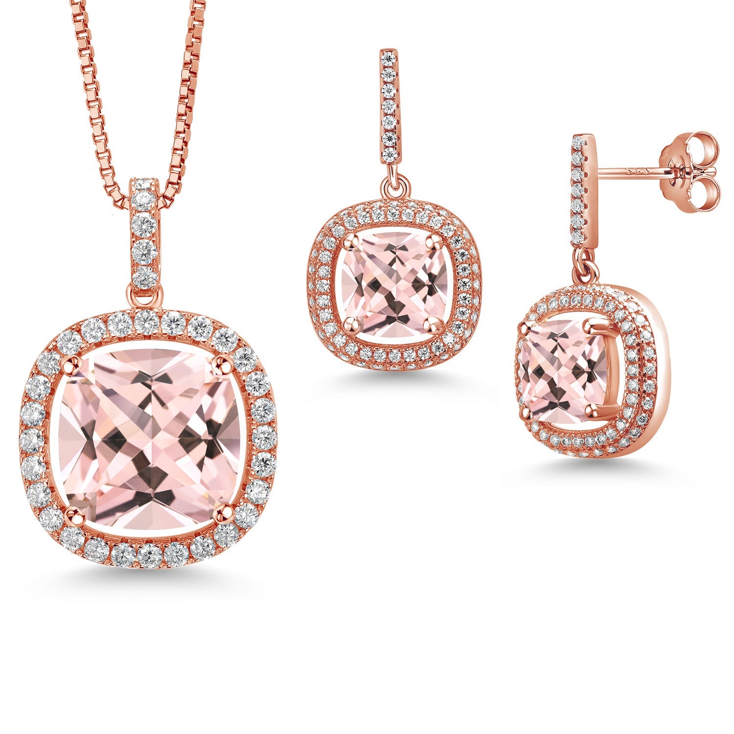 ELEGANT AND TIMELESS DESIGN: The combination of cushion cut gemstones and white moissanites creates a sophisticated and timeless look. The set includes a pendant with an 18-inch sterling silver chain and matching earrings, making it perfect for enhancing both everyday outfits and special occasion attire.
