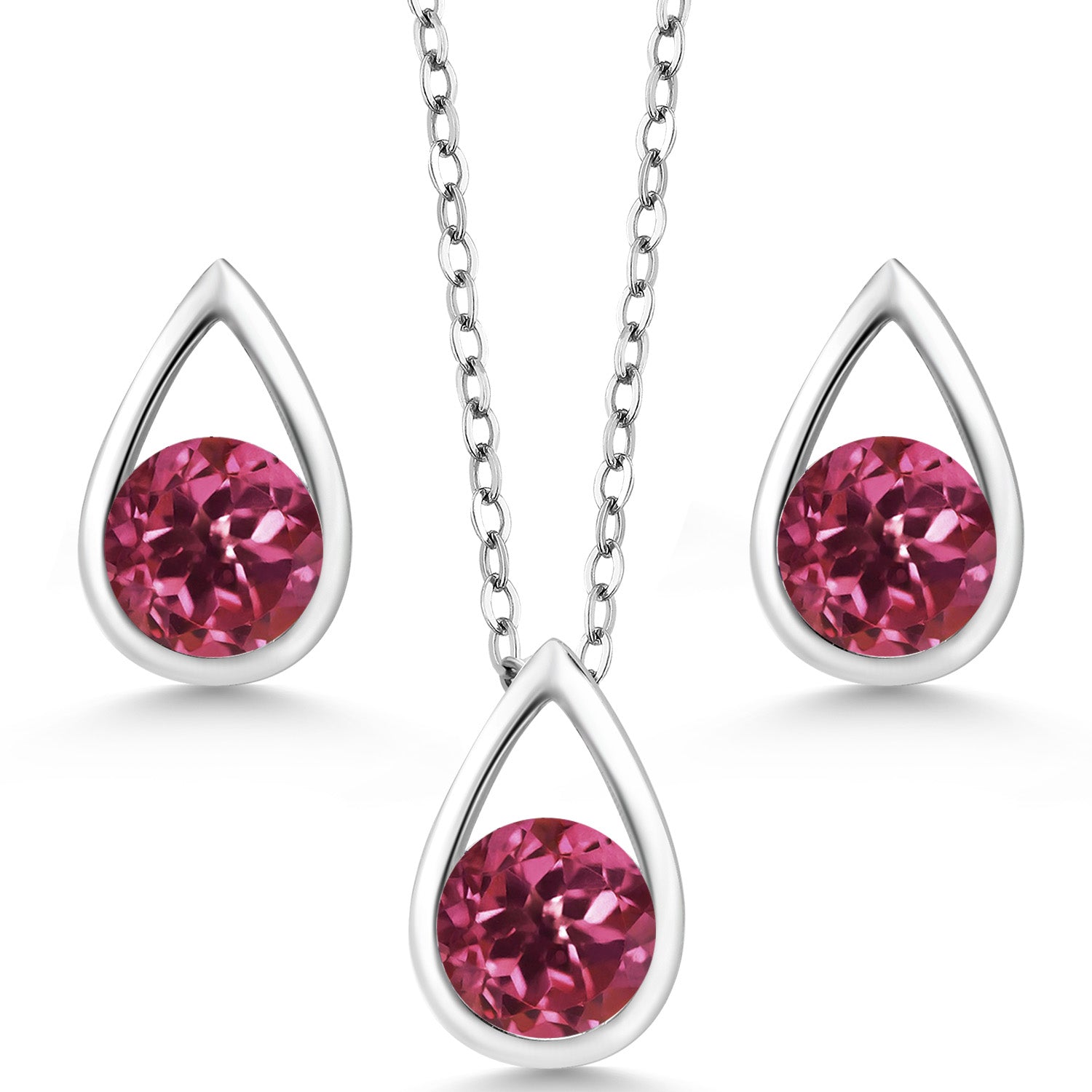925 Sterling Silver 5MM Round Gemstone Birthstone Teardrop Pendant Earrings Set | Jewelry Set for Women | With 18 Inch Silver Chain