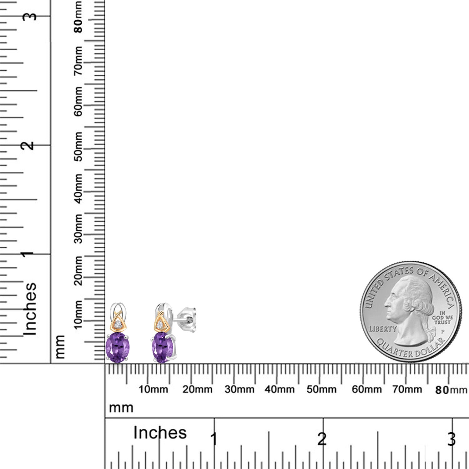 925 Sterling Silver and 10K Yellow Gold 7X5MM Oval Gemstone Birthstone and Lab Grown Diamond Earrings For Women