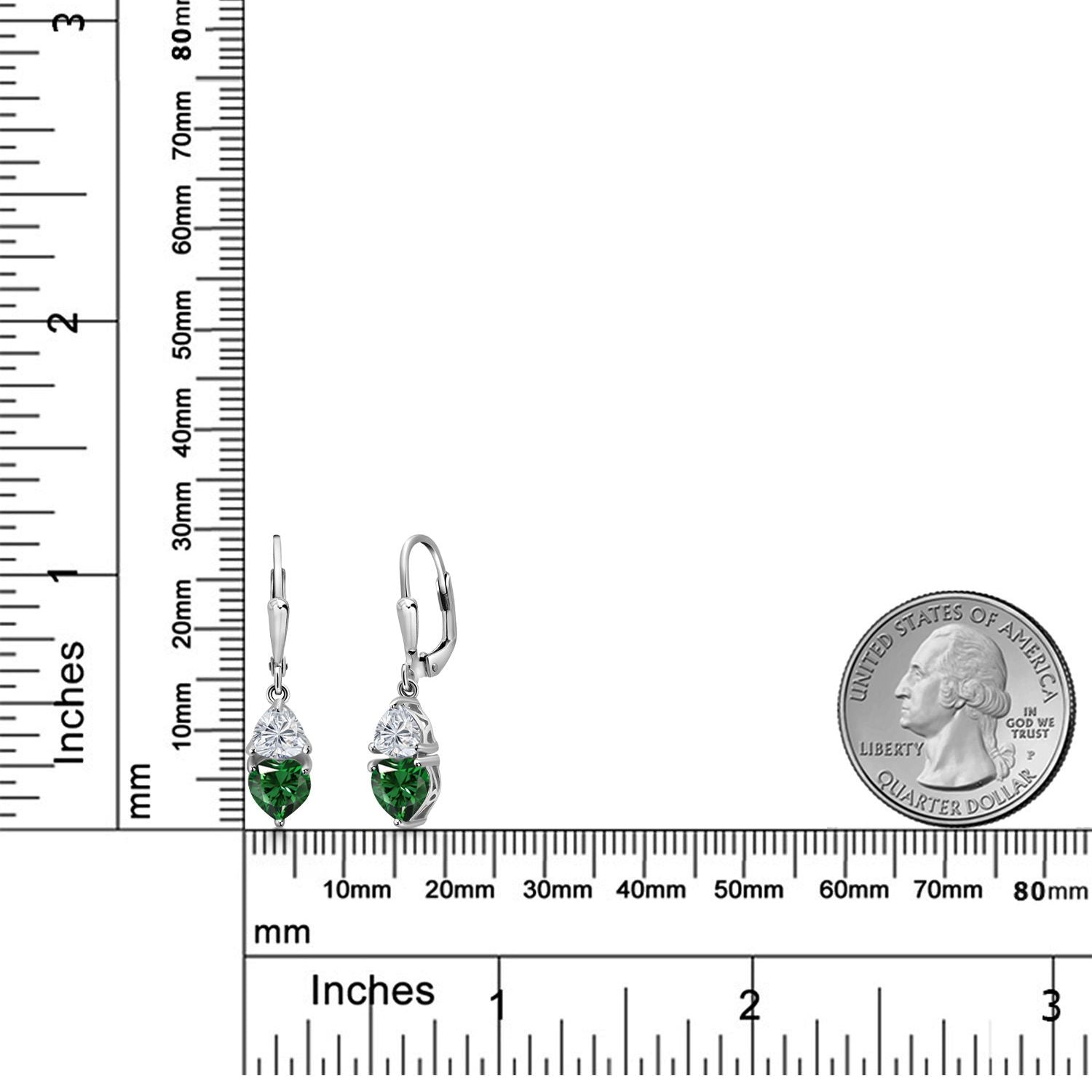 ELEGANT DANGLE DESIGN: These 925 sterling silver earrings feature a stunning 2.14 Cttw combination of vibrant Green Nano Emerald gemstones in heart shapes (6MM) and dazzling trillion-cut Lab Grown Diamonds (5MM), offering a timeless and sophisticated look.