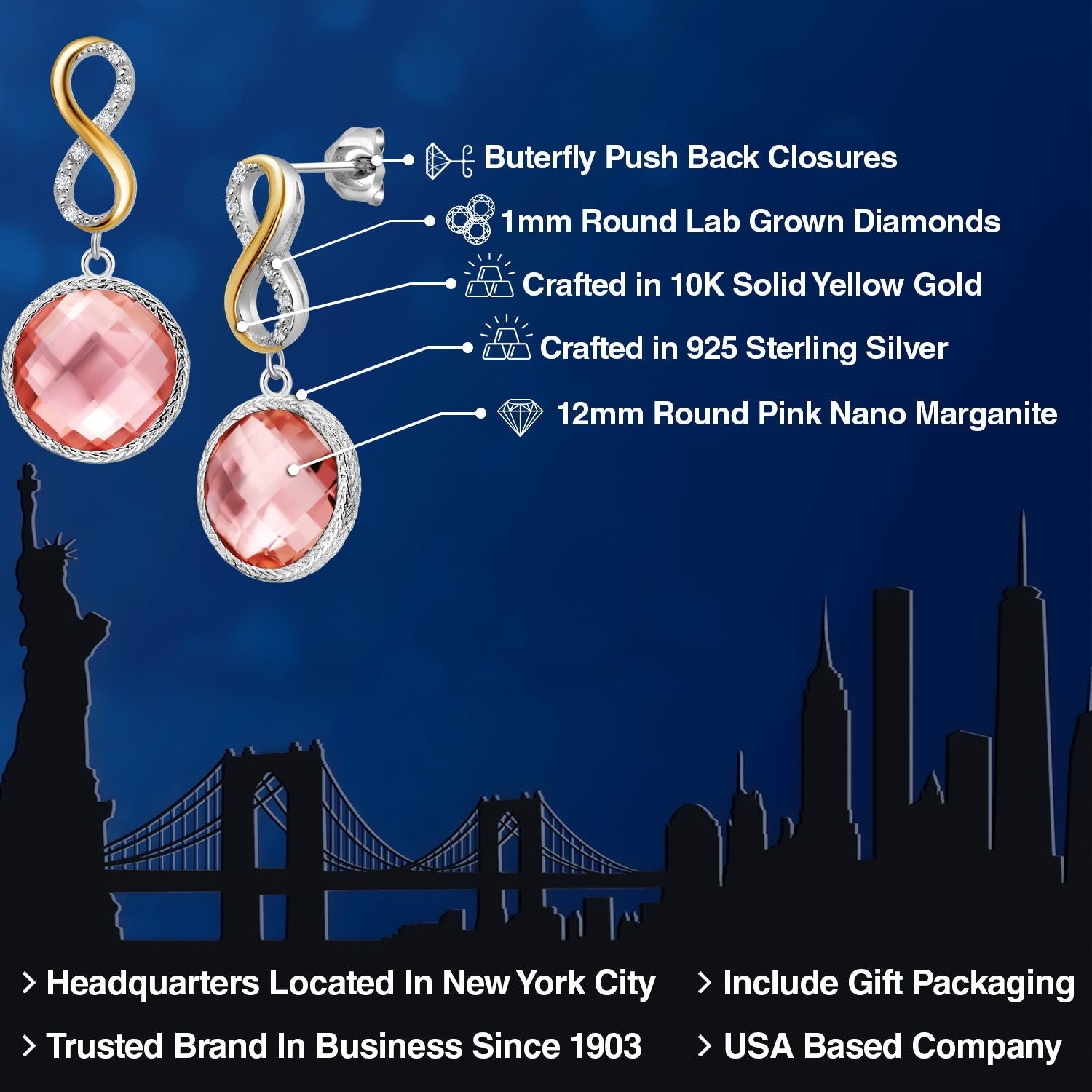925 Sterling Silver Peach Nano Morganite and White Lab Grown Diamond Earrings for Women | 13.46 Cttw | Gemstone March Birthstone | Round 12MM
