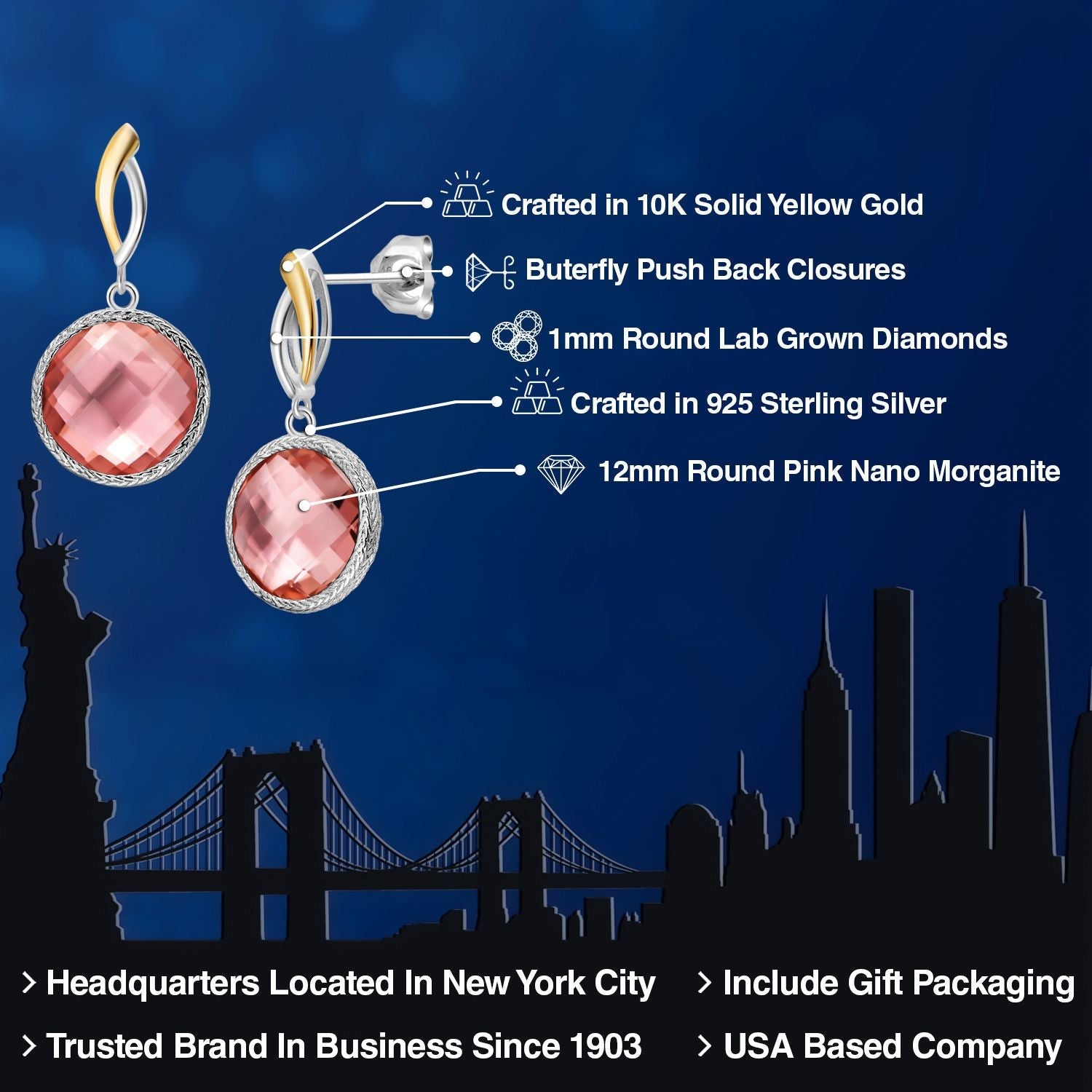 925 Sterling Silver Peach Nano Morganite Earrings for Women | 13.40 Cttw | Gemstone March Birthstone | Round 12MM