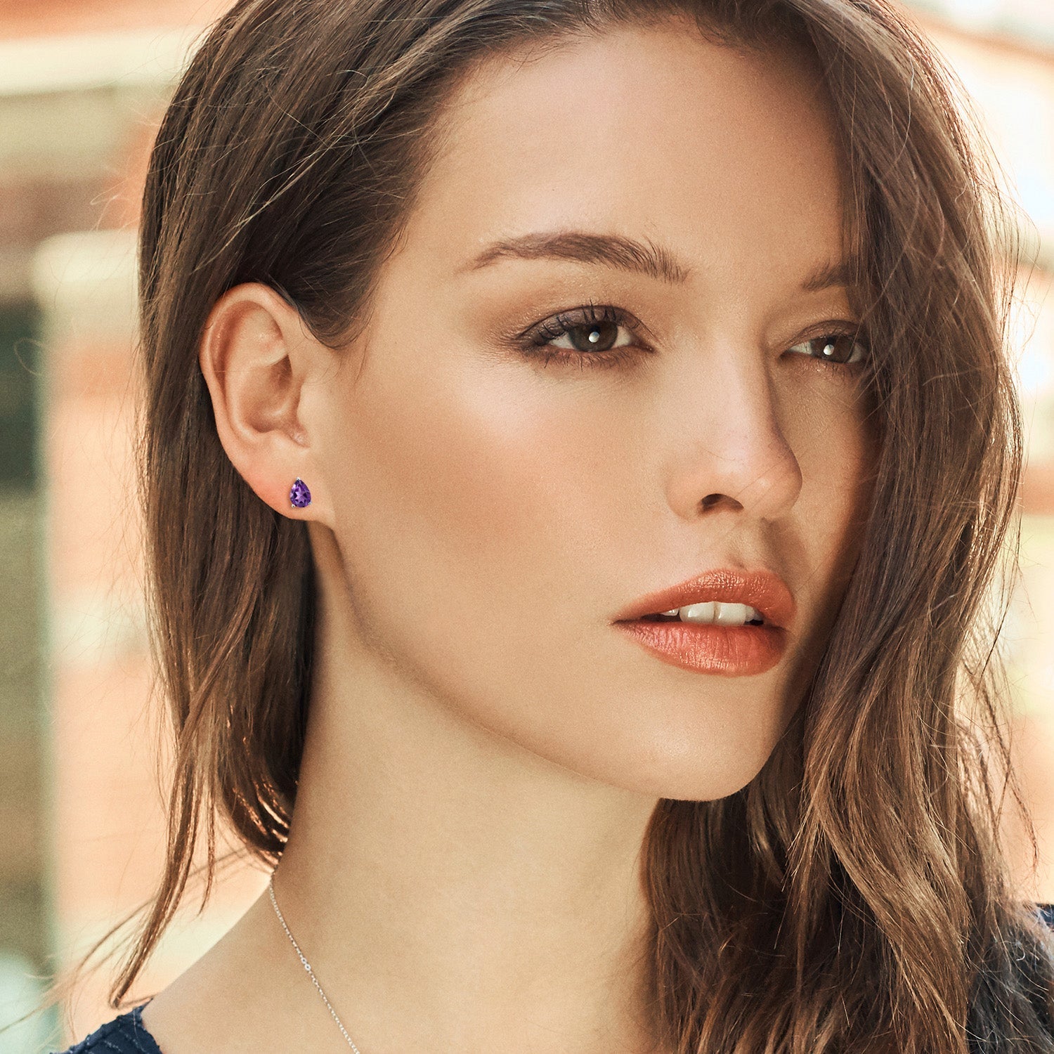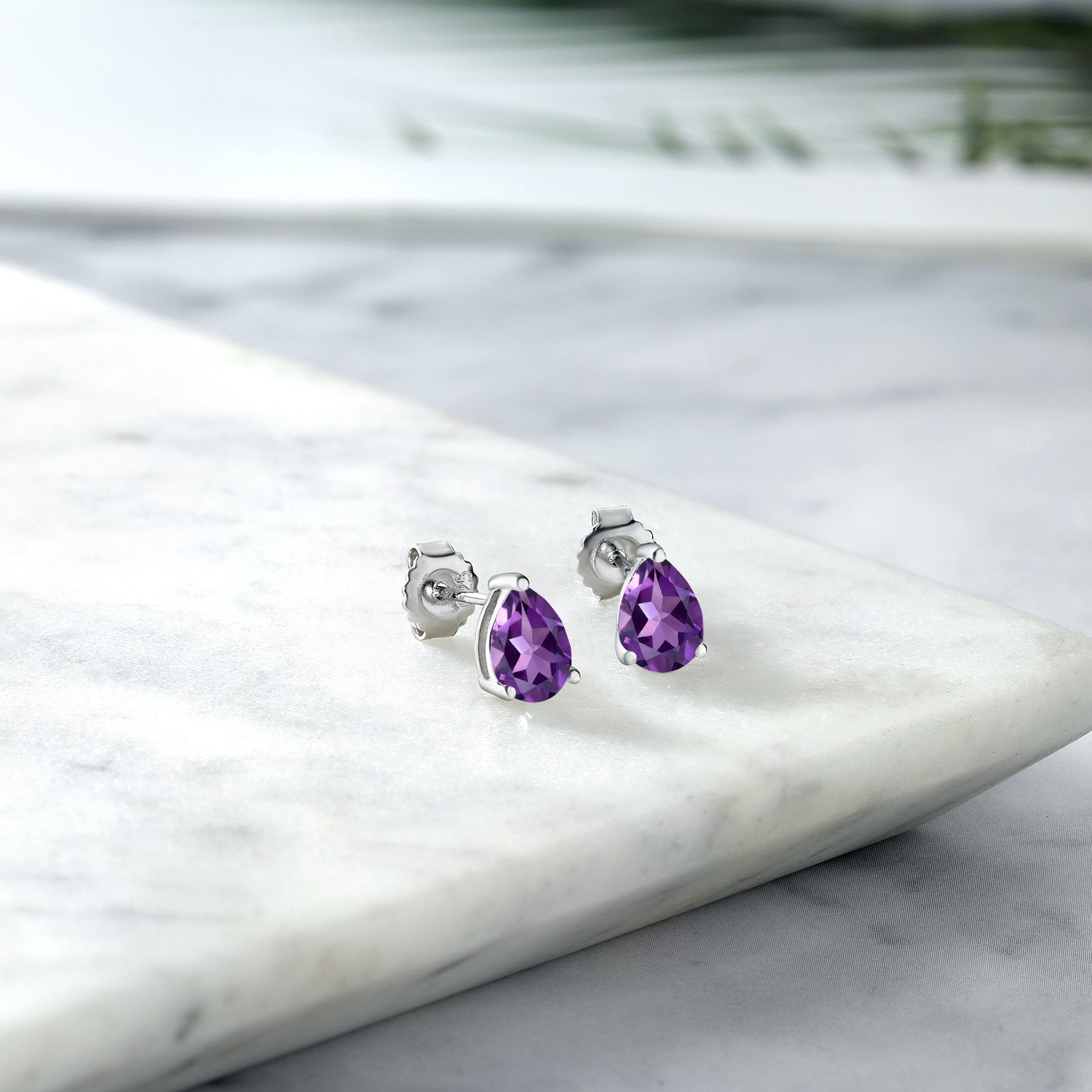 925 Sterling Silver Pear Shape 8X5MM Gemstone Birthstone Stud Earrings | Push Back Solitaire Stud Earrings For Women Men