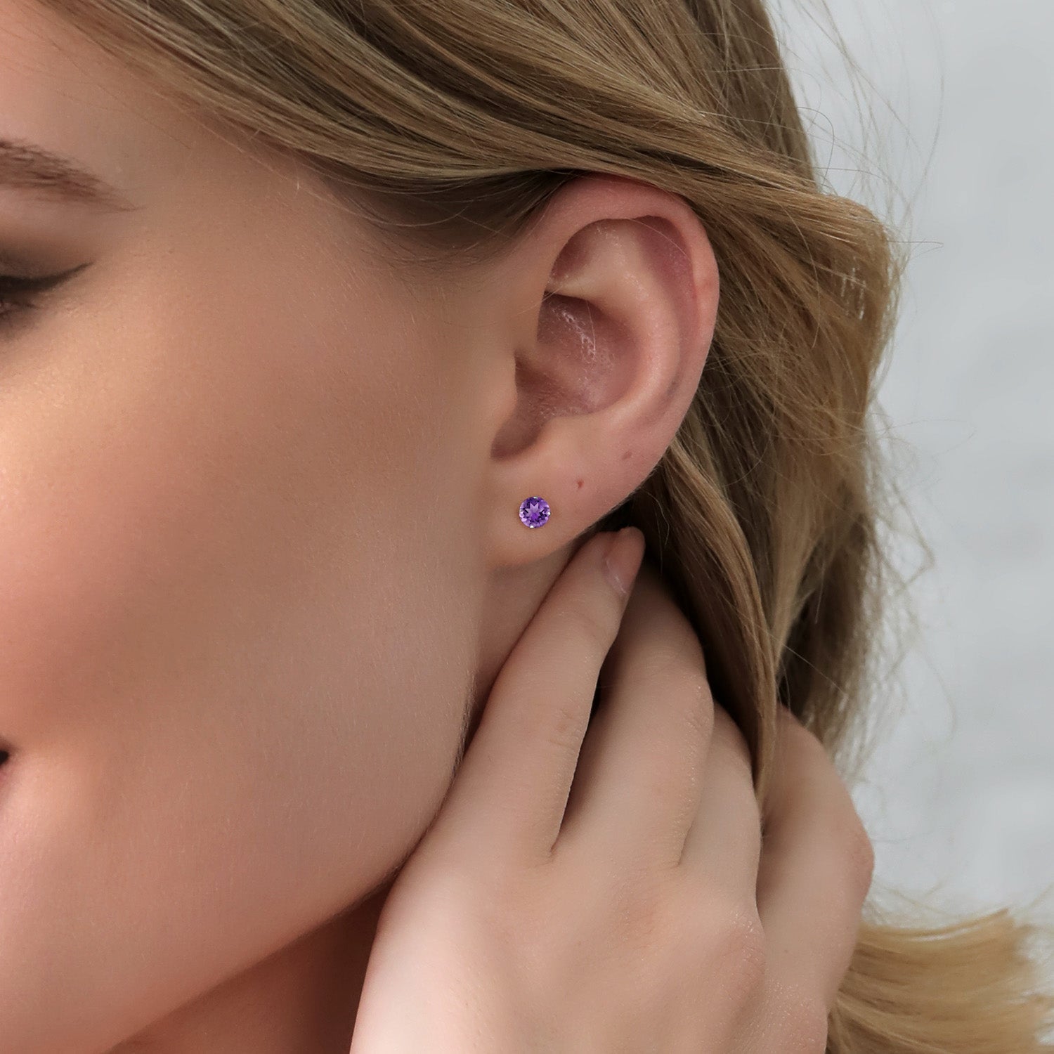 HIGH-QUALITY CRAFTSMANSHIP: Crafted from genuine 925 Sterling Silver, these earrings provide both durability and a luxurious shine. The 5MM round gemstone birthstones are meticulously selected for their vibrant color and exceptional clarity, ensuring a brilliant sparkle that will be admired from every angle.