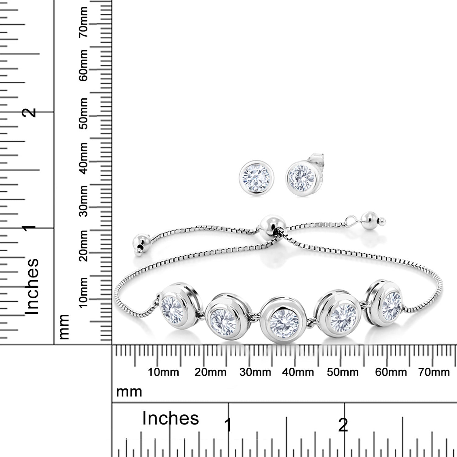 925 Sterling Silver Round Gemstone Birthstone Bracelet and Stud Earrings Jewelry Set For Women | Round 6MM | Adjustable Bolo Bracelet For Women | Easy-On Easy-Off