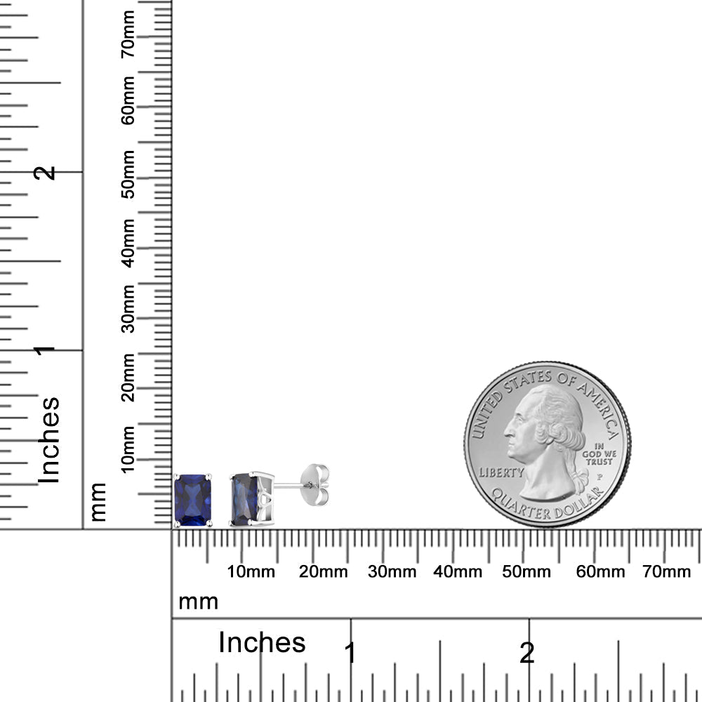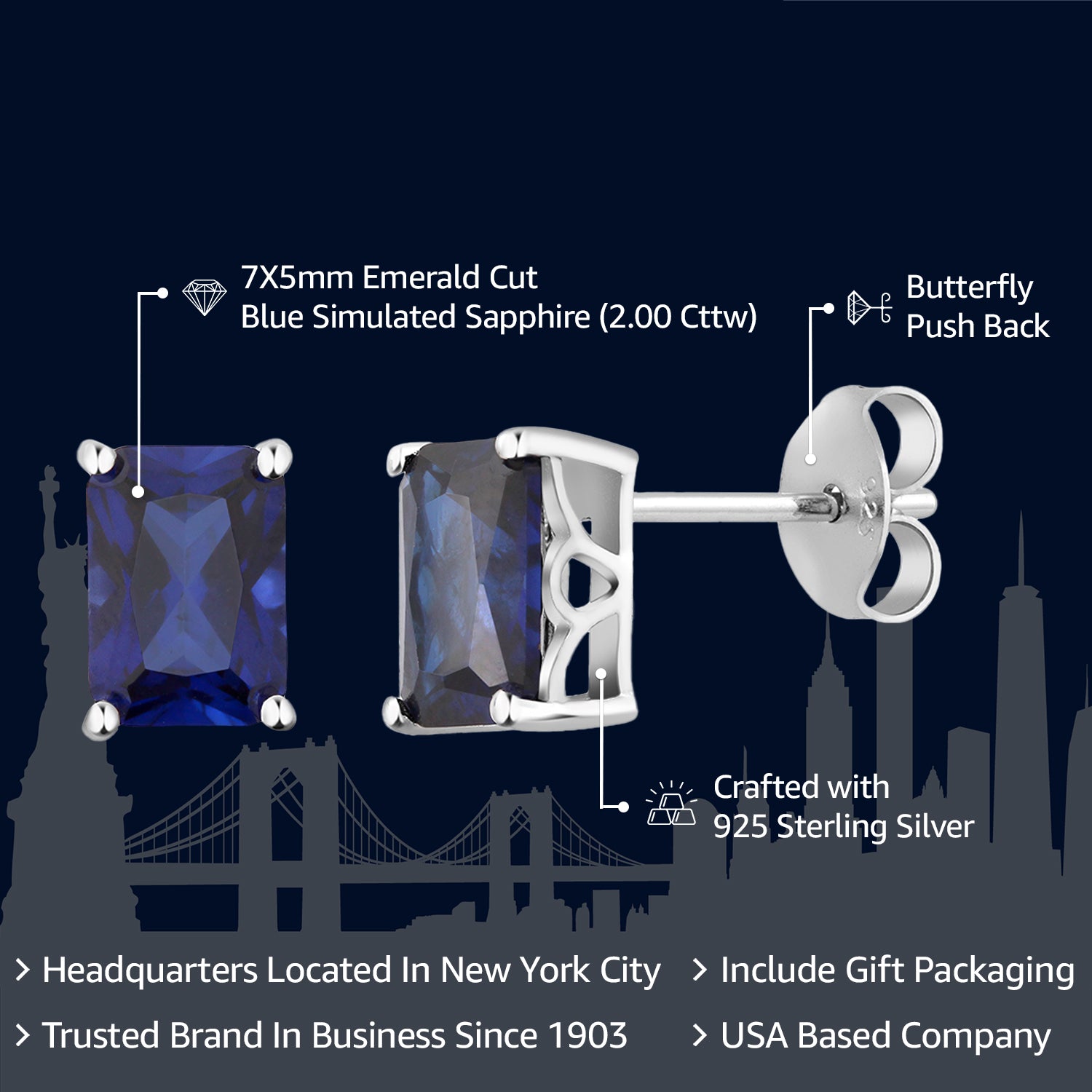 925 Sterling Silver Simulated Blue Sapphire Bridal Stud Earrings For Women Men (2.00 Cttw, 7X5MM Emerald Cut)