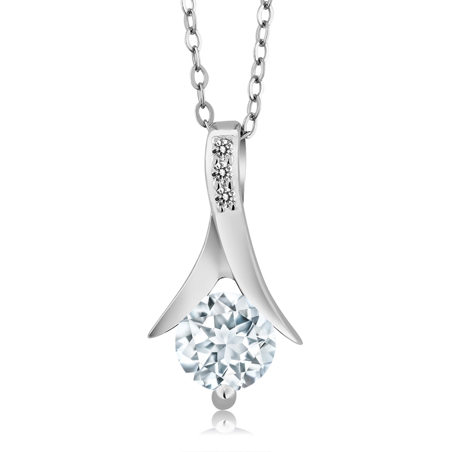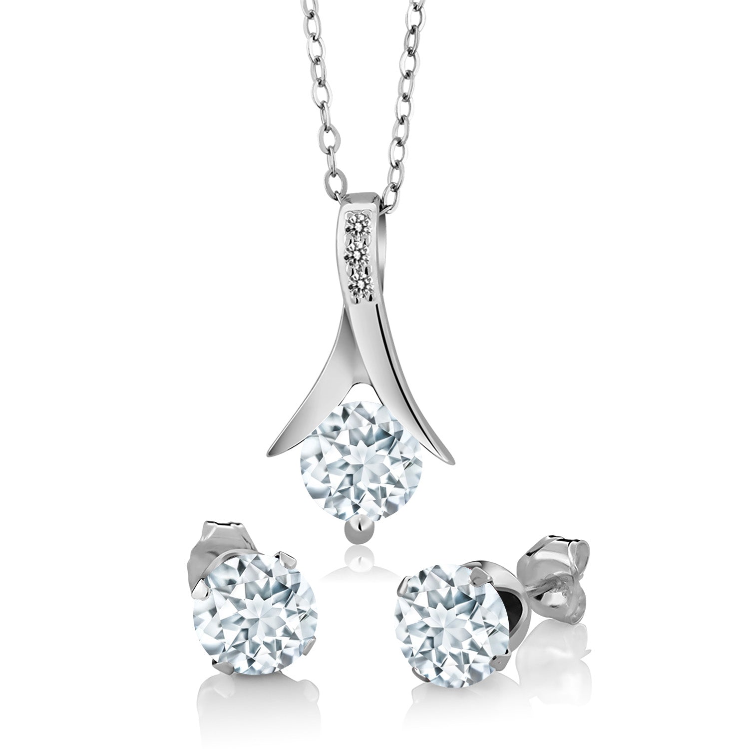 925 Sterling Silver Sky Blue Aquamarine and White Diamond Pendant Earrings Jewelry Set Gift Set For Women (2.30 Cttw, Round Cut with 18 Inch Silver Chain)