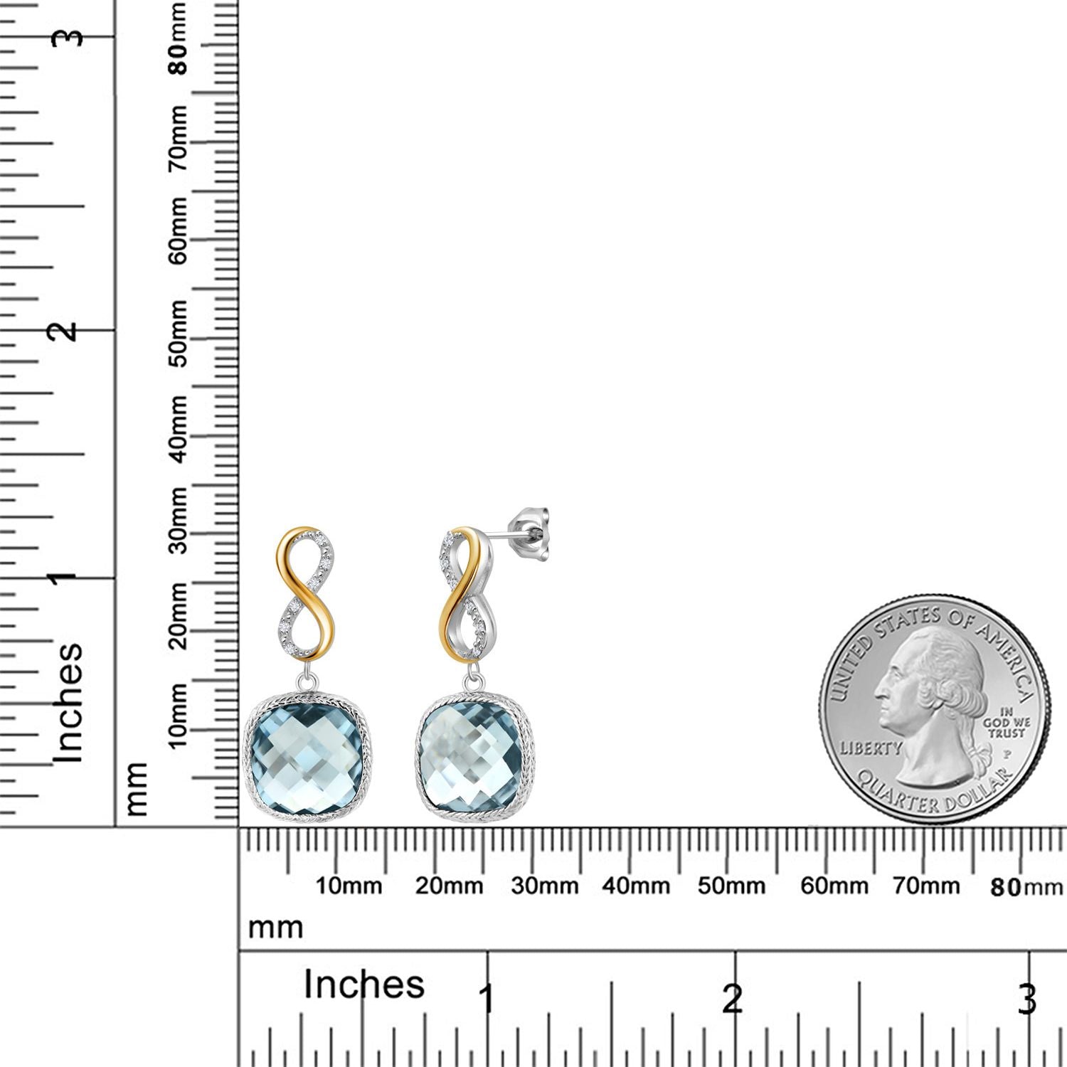 925 Sterling Silver Sky Blue Simulated Aquamarine and White Lab Grown Diamond Earrings for Women | 12.06 Cttw | Gemstone March Birthstone | Cushion 12MM