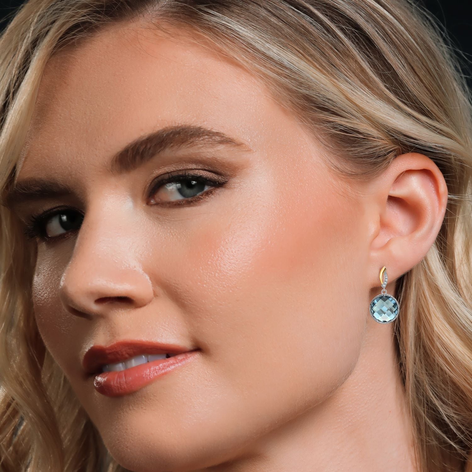 925 Sterling Silver Sky Blue Simulated Aquamarine and White Lab Grown Diamond Earrings for Women | 13.47 Cttw | Gemstone March Birthstone | Round 12MM