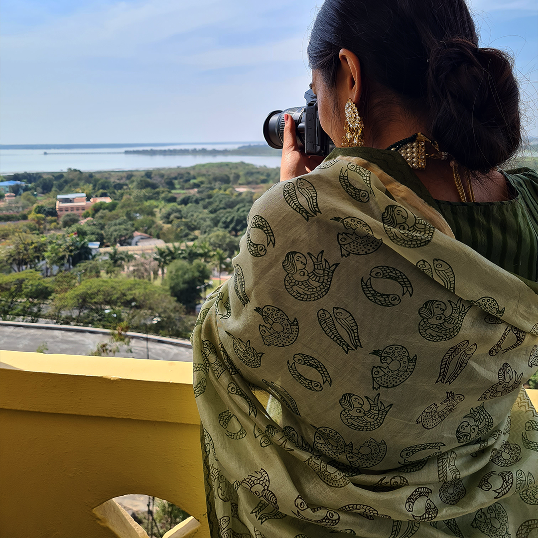 - Uniqueness: Experience the timeless elegance of our Designer Chanderi Handloom , hand block printed Sarees, Each exquisite piece is adorned with intricate motifs , Few Motifs are meticulously drawn by talented tribal Gond artists Ravi Kumar Tekam. Team work of the craftsmen and Designer brings this beautiful piece for you. Make a statement with your style, celebrate Bharat’s cultural heritage, and Feel Proud and look stylish and elegant in ANA.S DESIGNER LABEL exclusive Hand block printed Sarees. Cherish The beauty of storytelling through Art.