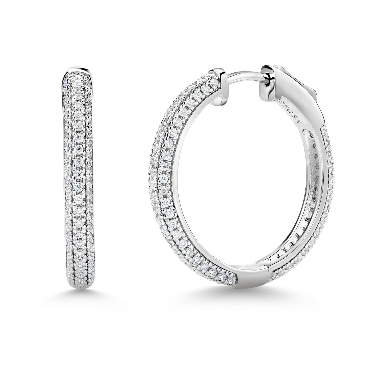 White Moissanite Huggie Hoop Earrings For Women | 925 Sterling Silver | Round Hoop Earrings | 1.20 Ct | 1 Inch | Fine Jewelry Gifts for Her Mom Women Wife